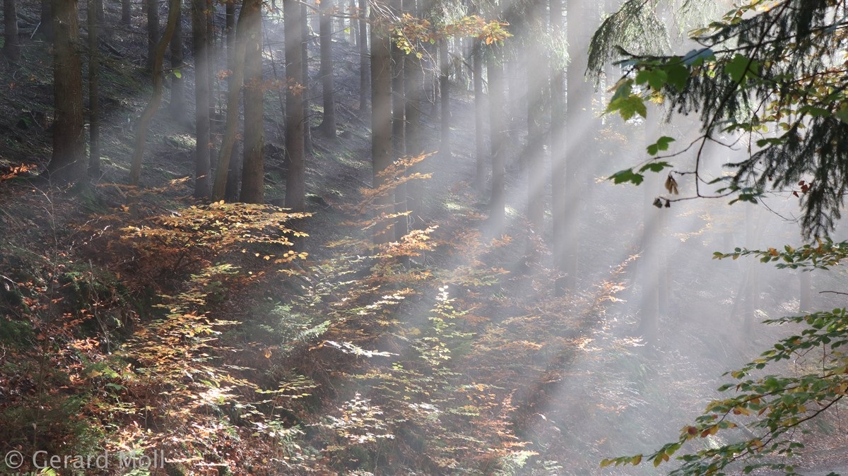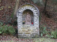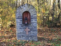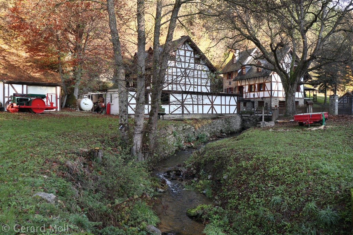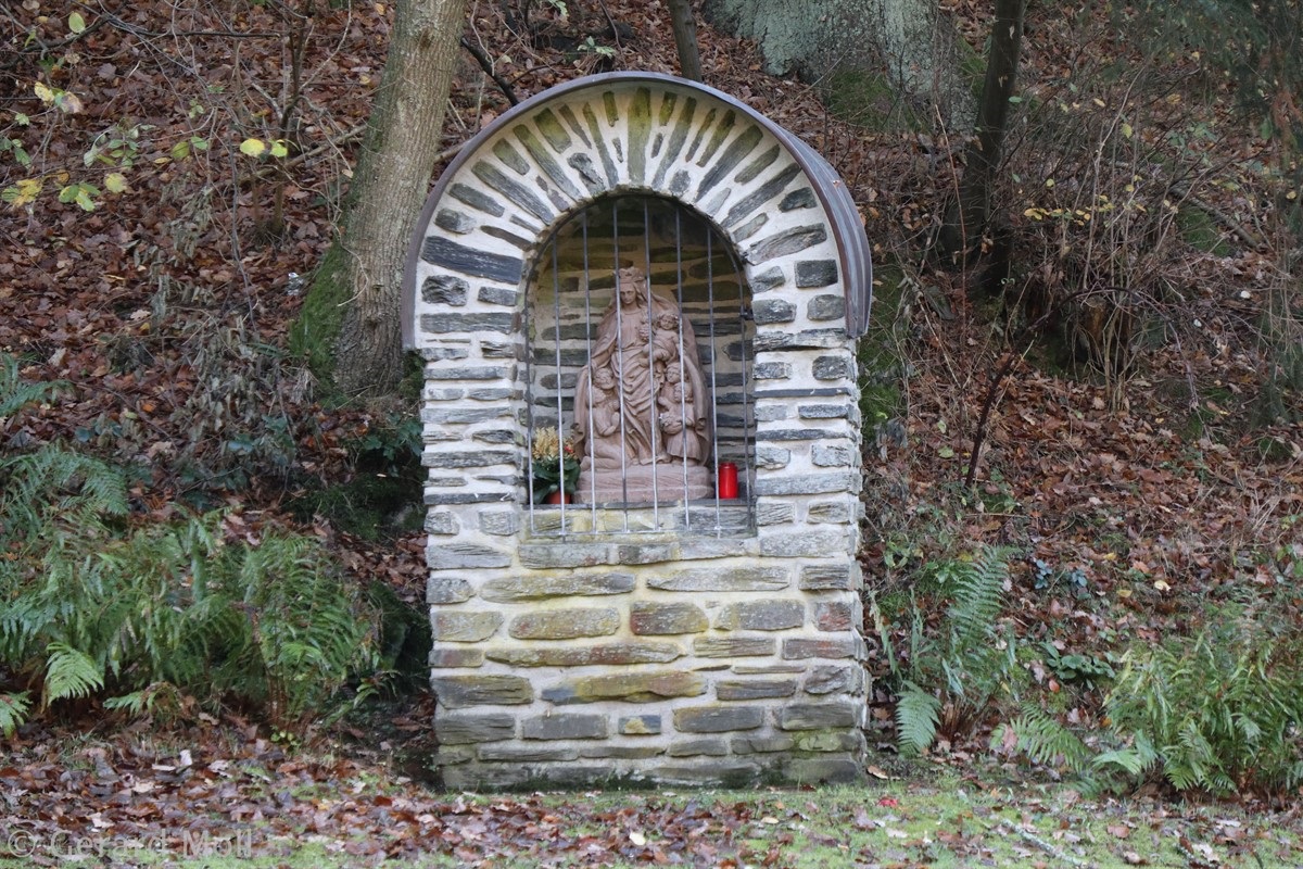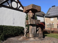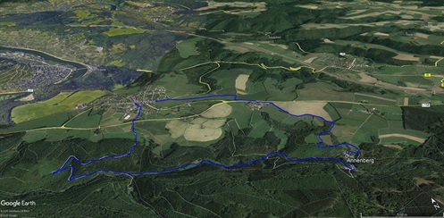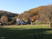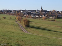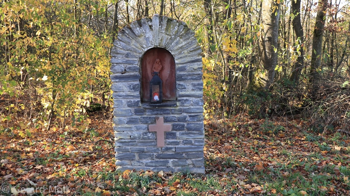 Vom Bergarbeiterbrunnen in Monzelfeld führt der Weg zuerst durch den Ort, dann über Felder hinunter in das Tal des Hinterbachs. An alten Mühlen vorbei erreichen wir den kleinen Ort Annenberg. Hier wurde früher Bergbau betrieben. Wieder auf der Hochfläche angekommen, bieten sich uns weite Blicke in die Hunsrück-Landschaft. Wir berühren den Hubertusweg, der von Longkamp herüber kommt, und kehren über Felder zurück nach Monzelfeld.