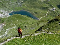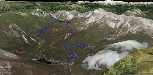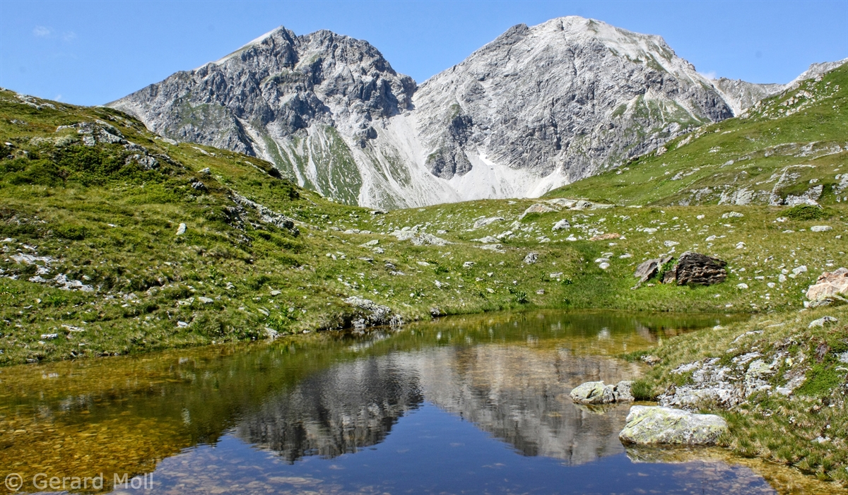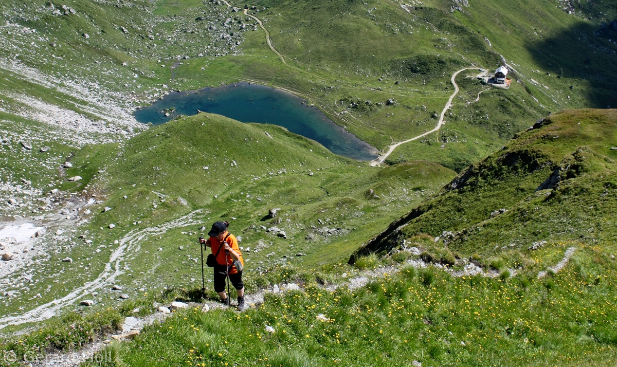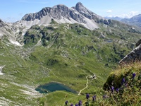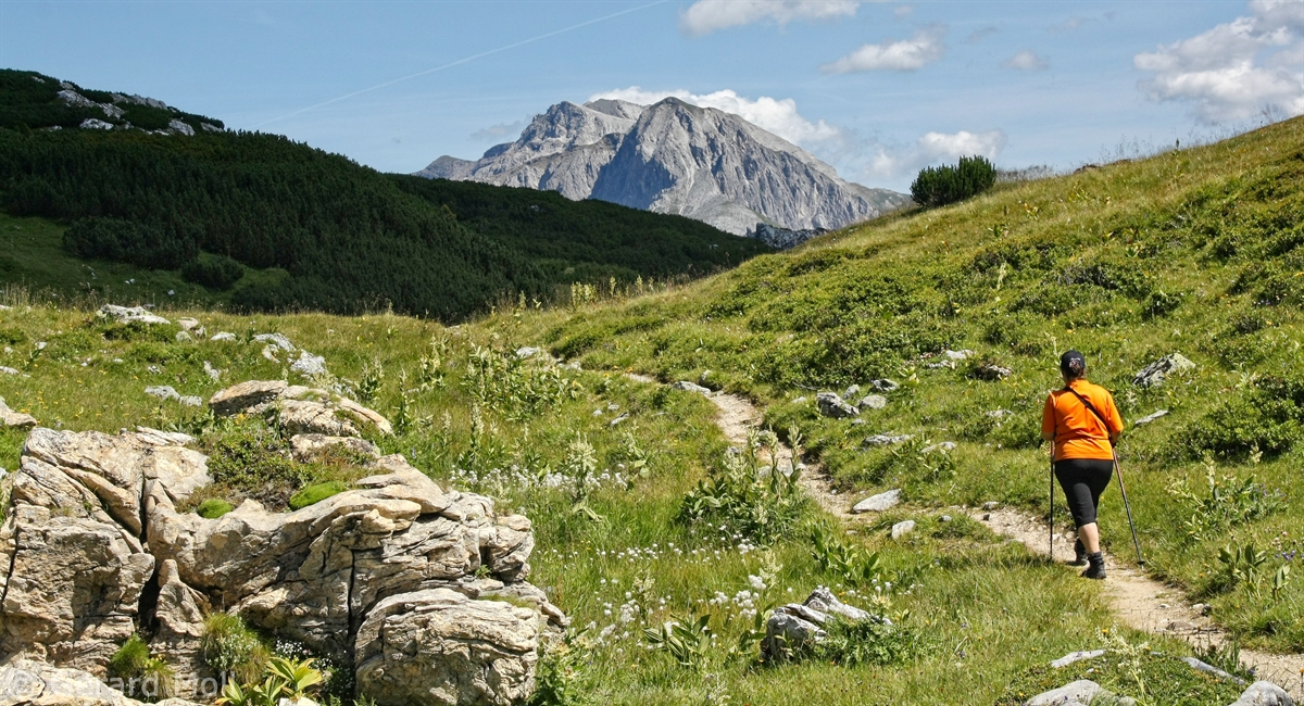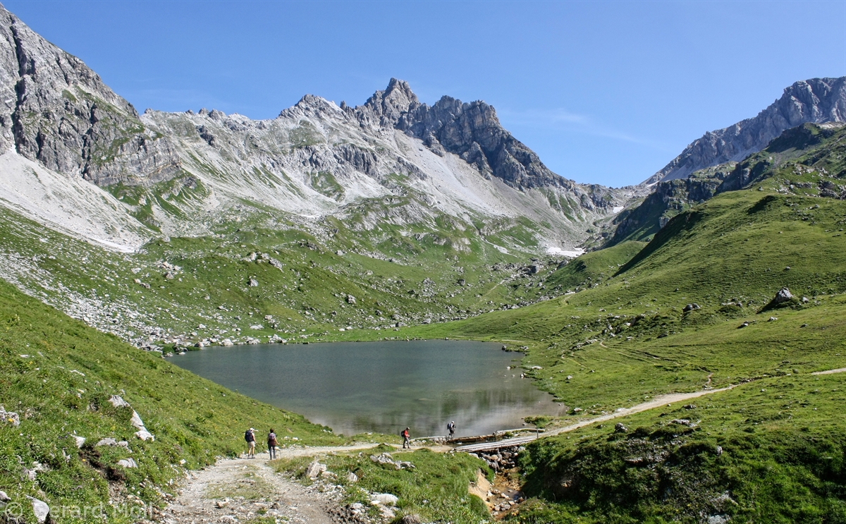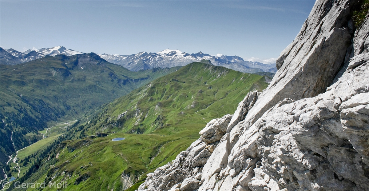 Im Riedingtal parken wir an der Schlierer Alm und nutzen den Wanderbus bis zur Abzweigung (1535 m) zur Franz-Fischer-Hütte. Ehe wir die Hütte erreichen, steigen wir nach links zum Stierkarkopf (2366 m), wobei das letzte Stück über steileres Schrofengelände führt. Dann geht es hinunter zur Franz-Fischer-Hütte (2018 m). Eine herrliche Wanderung bringt uns, vorbei an den Esserseen zur Jakoberalm (1839 m) und schließlich zurück zum Parkplatz an der Schliereralm (1495 m).