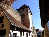 Zuerst wandern wir entlang der Stadtmauer, vorbei an gut erhaltenen Toren, durch Freinsheim, das auch als das "pfälzische Rothenburg" bezeichnet wird. Dann führt uns der Weg hinauf zum Friedhofsturm, dem Rest der alten Kapelle zu Unserer Lieben Frau, von wo aus die Fernsicht in die Rheineben genießen. Weiter geht es durch die Weinberge zum Bildstock "Schwarzes Kreuz". Unsere letzte Station ist der Oschelskopf, ehe wir ins Zentrum zurückkehren.