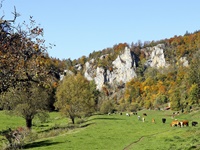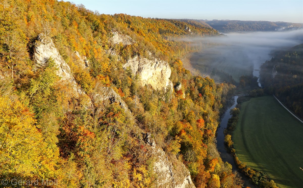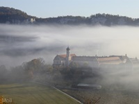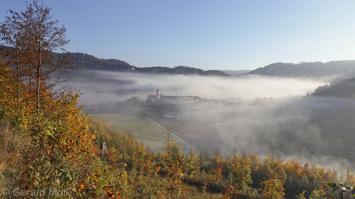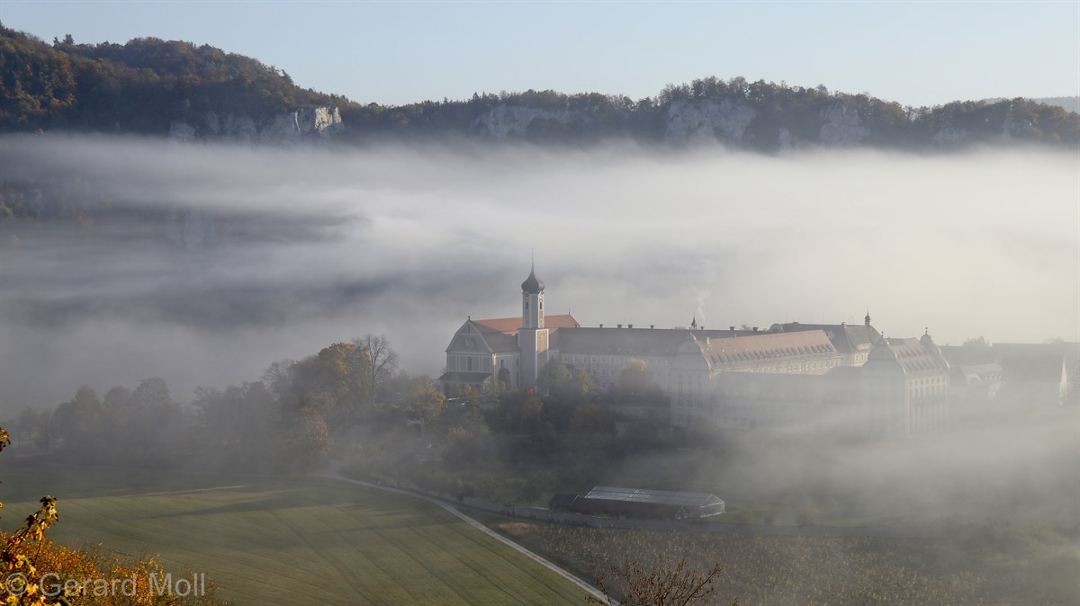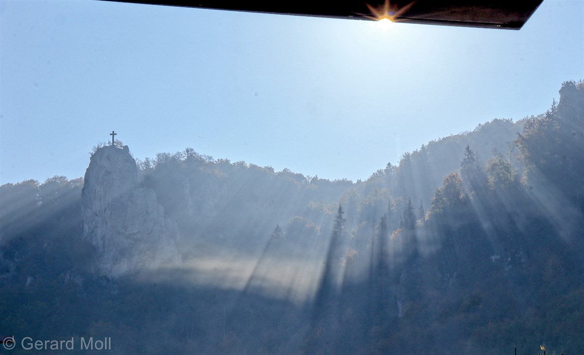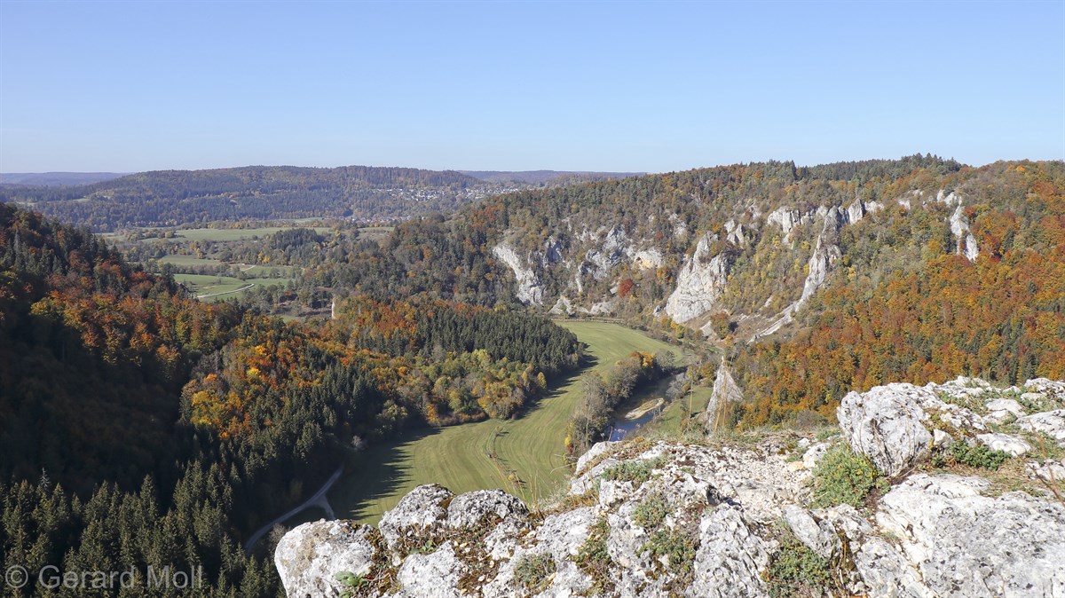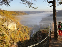 Nach einem Halt am Top-Aussichtspunkt Knopfmacherfelsen haben wir in Beuron geparkt und sind mit der Bahn nach Fridingen gefahren. Nach einem Rundgang durch Fridingen ging es an der Ziegelhütte vorbei entlang der Donau. Dann folgte der steile Anstieg zur Ruine Kallenberg. Über den Jägerhof an der Donau wurde dann Kloster Beuron erreicht.