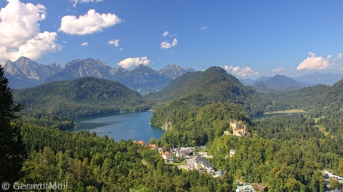 Bild in Lightbox öffnen (open image in lightbox). Blick von Schloss Neuschwanstein auf Schloss Hohenschwangau.