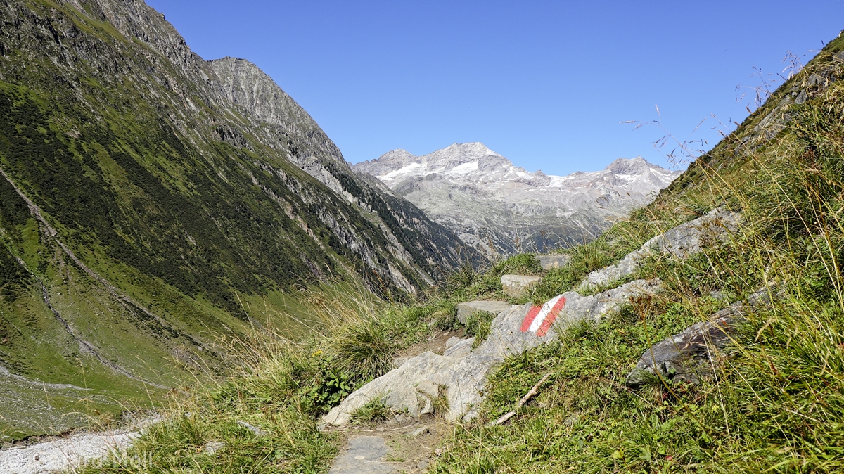 Vom Ende der Strasse am Schlegeisspeicher (1800 m) geht es zuerst am See entlang in das Tal hinein. Dann führt ein herrlicher Steig neben dem Furtschaglbach hinauf zur Hütte (2295 m). Über das Schönbichler Horn (3134 m) kann von hier die Berliner Hütte erreicht werden.