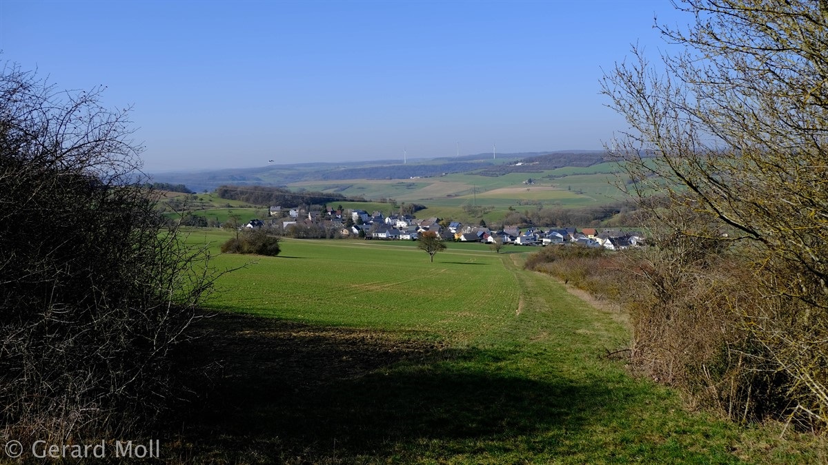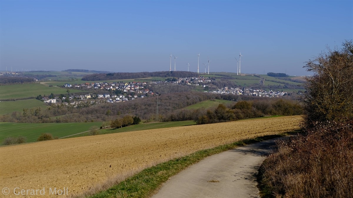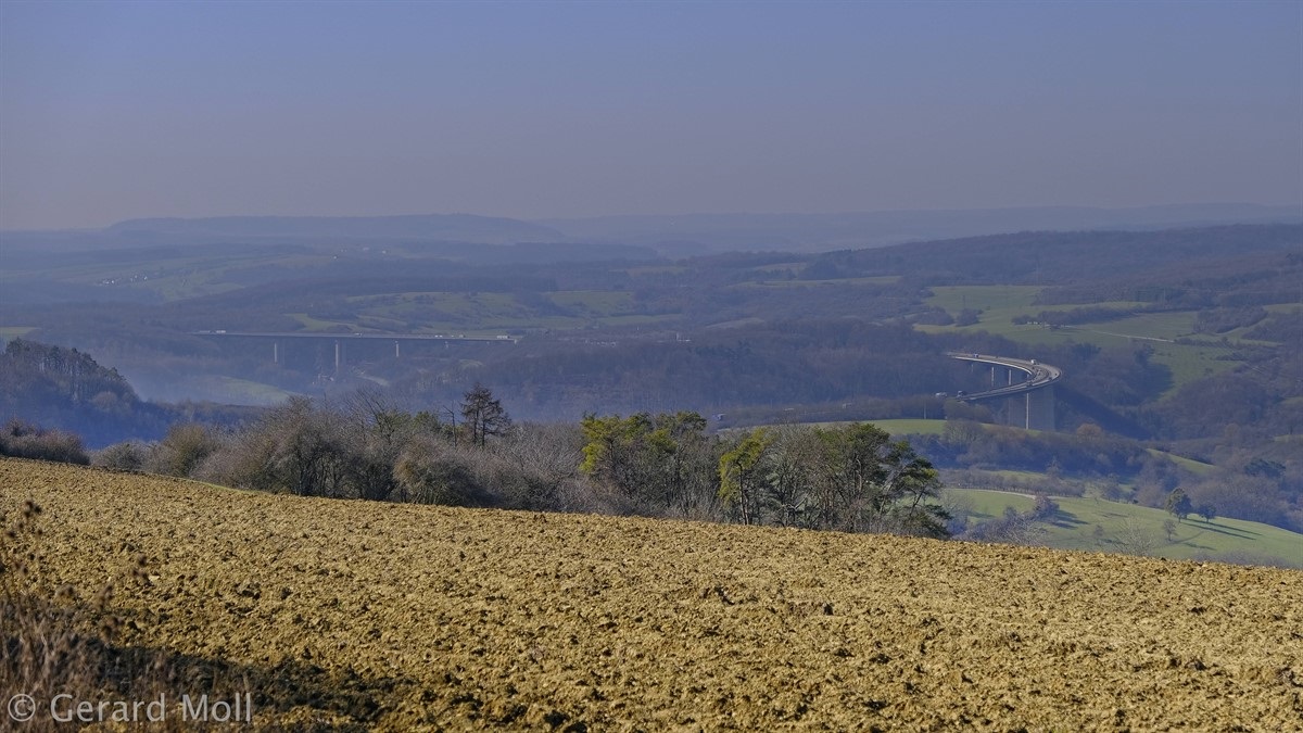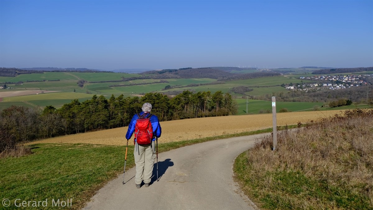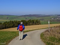 Leider gibt es bei dieser aussichtsreichen Wanderung keine gekennzeichneten Parkplätze in der Umgebung des Ausgangspunktes. Vom Ort führt der Weg sehr direkt über Felder zur Autobahn. An ihr entlang geht es dann flacher zur Höhe "Auf der First" mit schöner Aussicht. Von dieser steigen wir wiederum sehr direkt Richtung Trierweiler ab. In dem kleinen Waldstück oberhalb von Fusenich haben wir eine Abzweigung übersehen und sind direkt nach Fusenich zurückgekehrt.