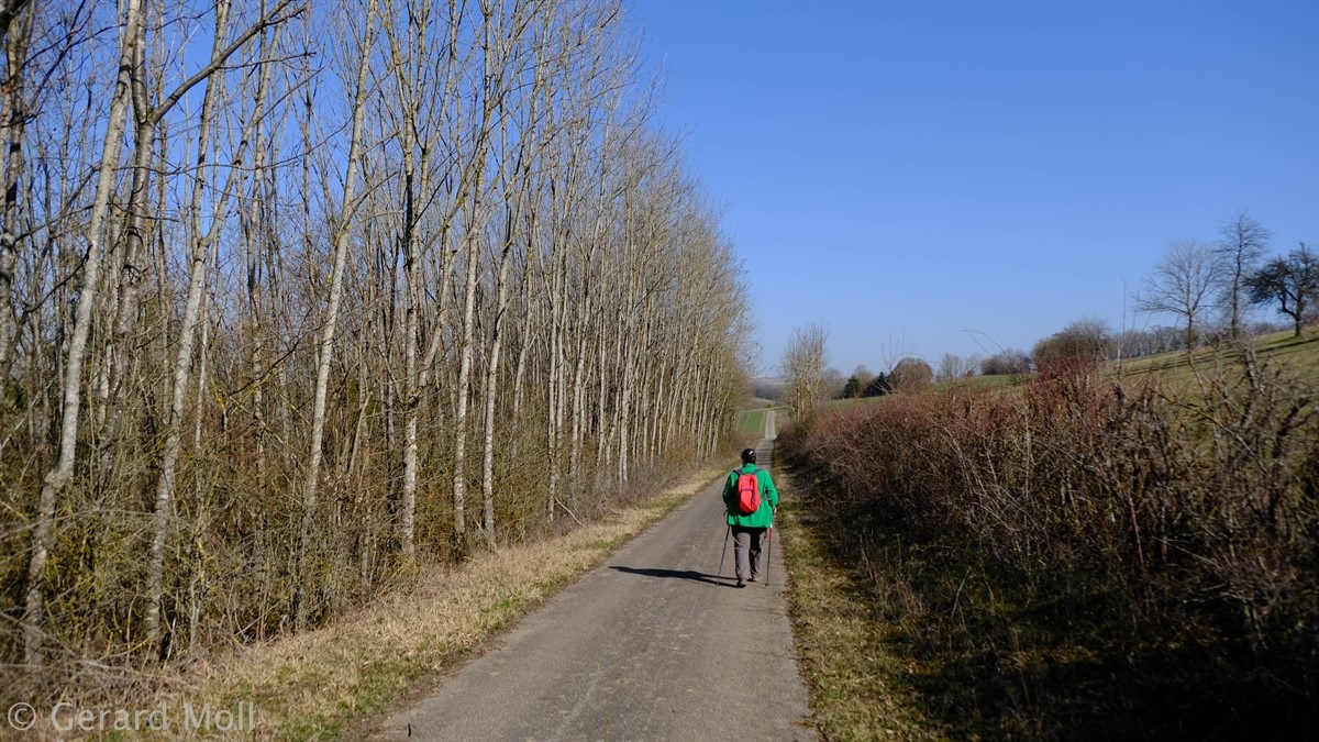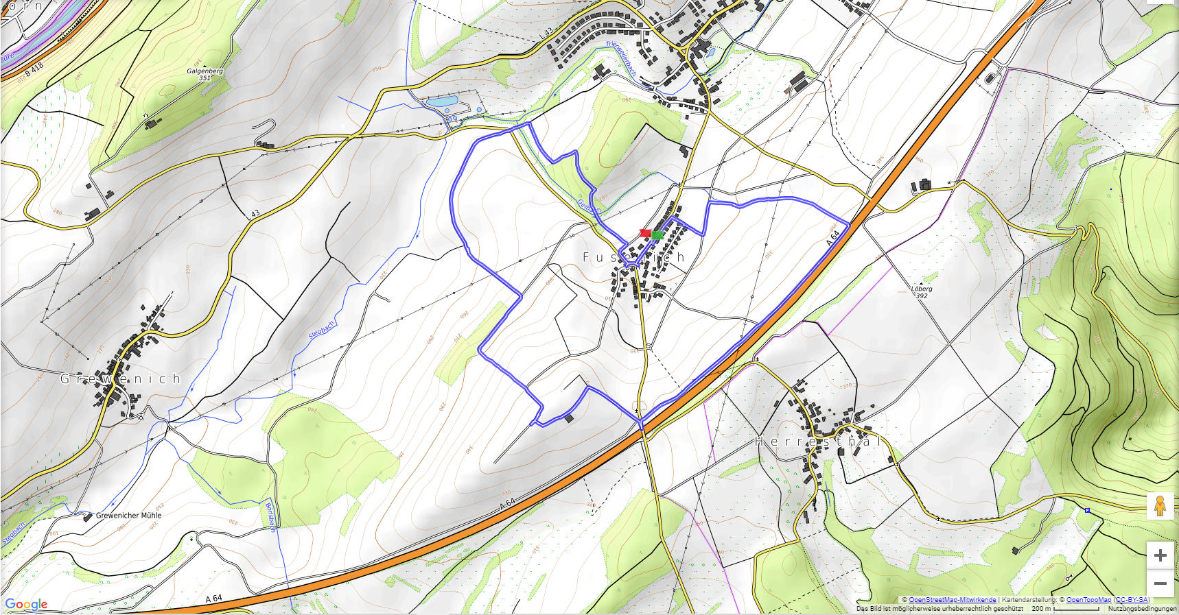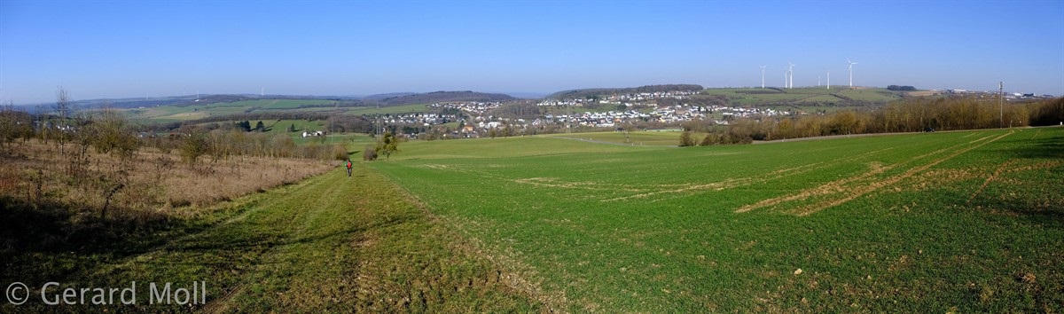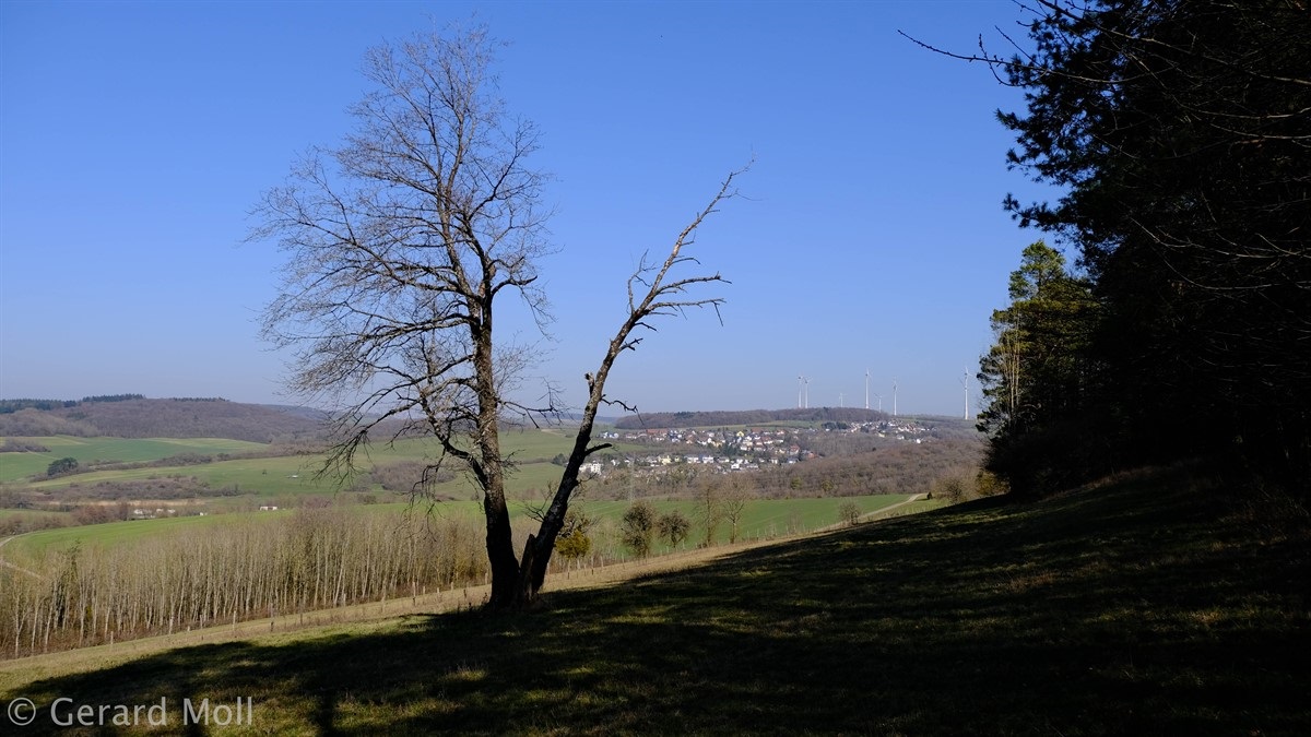 Leider gibt es bei dieser aussichtsreichen Wanderung keine gekennzeichneten Parkplätze in der Umgebung des Ausgangspunktes. Vom Ort führt der Weg sehr direkt über Felder zur Autobahn. An ihr entlang geht es dann flacher zur Höhe "Auf der First" mit schöner Aussicht. Von dieser steigen wir wiederum sehr direkt Richtung Trierweiler ab. In dem kleinen Waldstück oberhalb von Fusenich haben wir eine Abzweigung übersehen und sind direkt nach Fusenich zurückgekehrt.