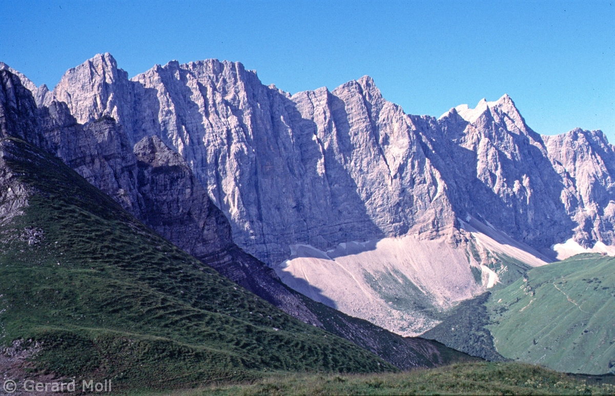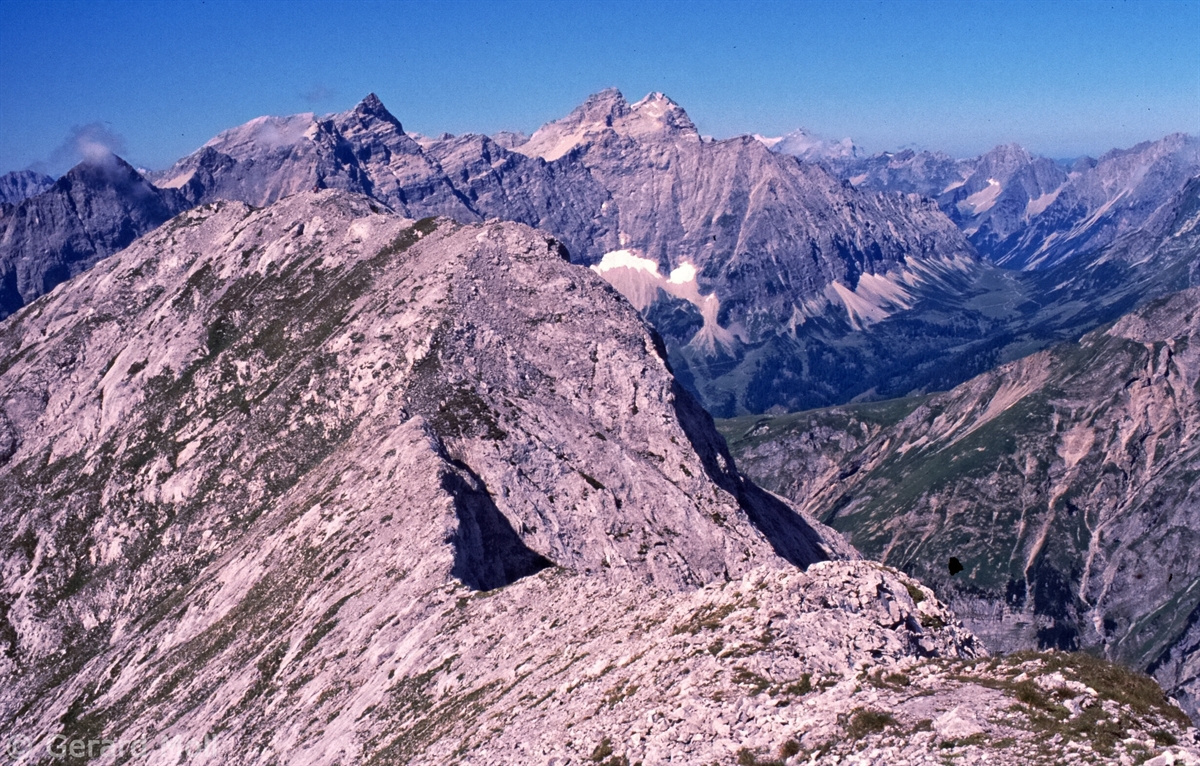 Von der Eng führt ein steiler Weg über das Gumpenjöchl auf das Gamsjoch (2452 m). Das letzte Stück am Gipfelgrat ist ziemlich ausgesetzt, der Rundblick überwältigend.
