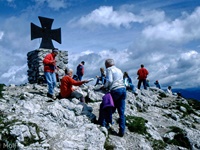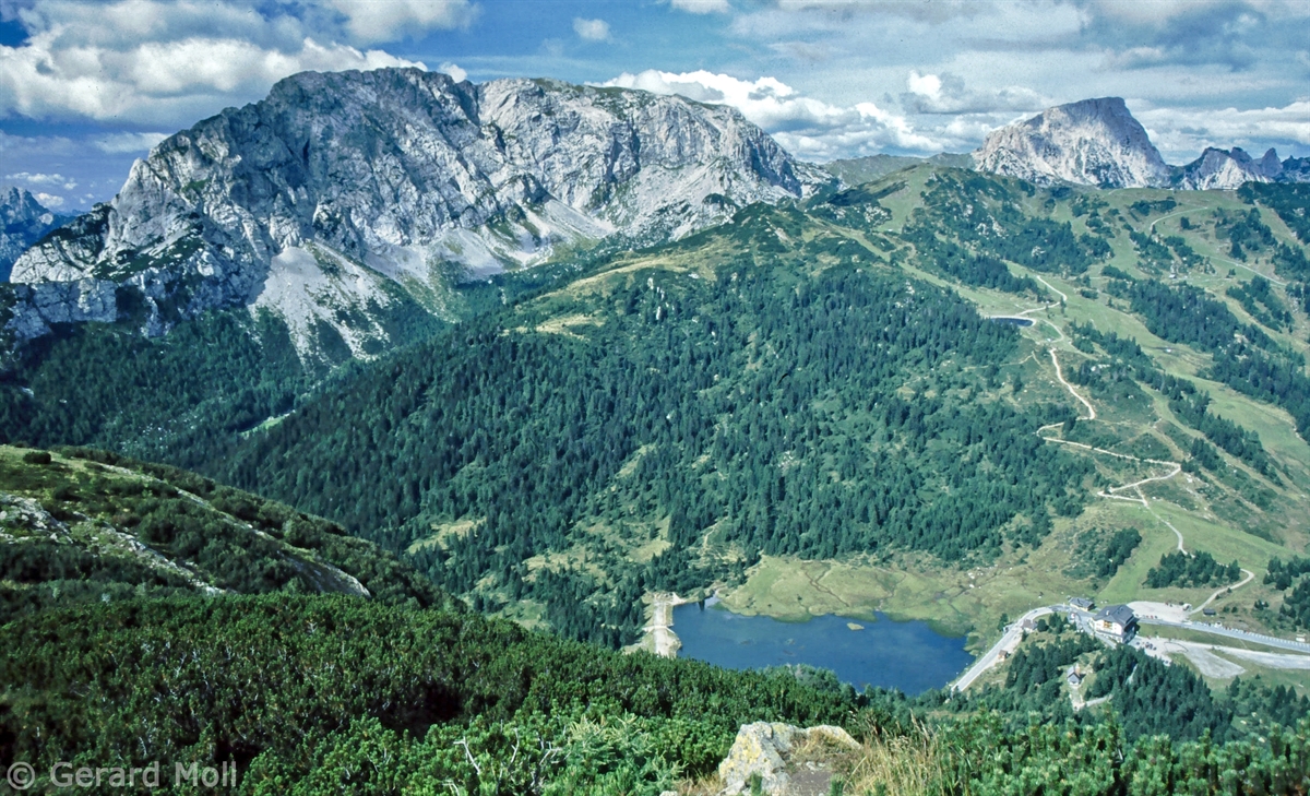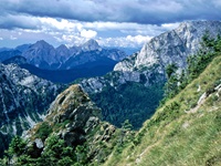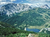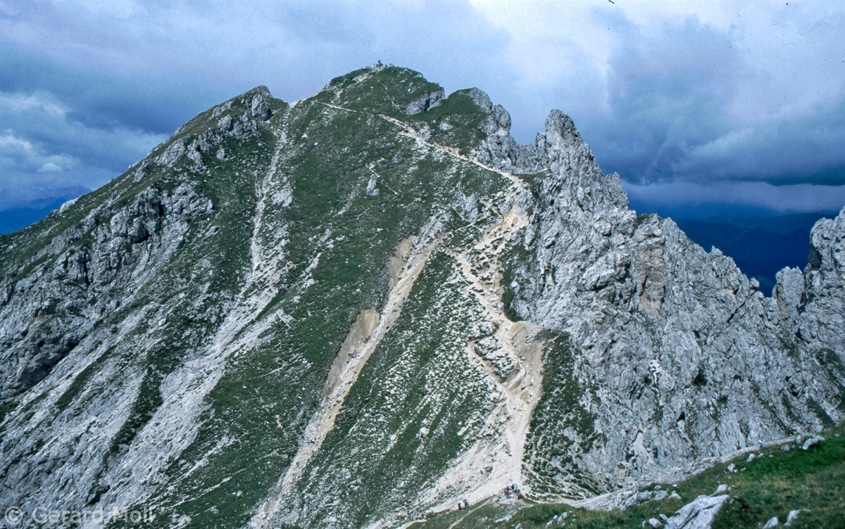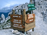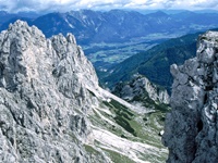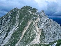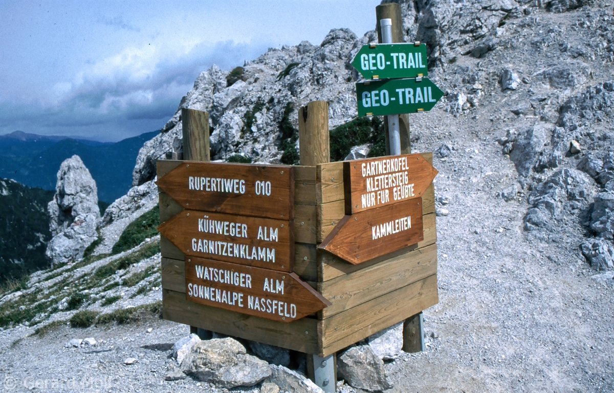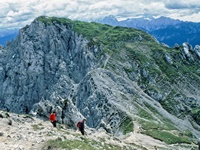 Vom Nassfeldpass (1530 m) wandern wir zuerst hinauf zum Auernig (1803 m), dann über den Garnitzenberg (1951 m) zum Garnitzentörl (1856 m) und schließlich auf den Gartnerkofel (2195 m). Beim Abstieg gehen wir über Kammleiten (1998 m) und Watschiger Alm (1620 m) zurück zum Nassfeldpass. Nur am Gartnerkofel blüht im Juli die Kärntner Wulfenie.