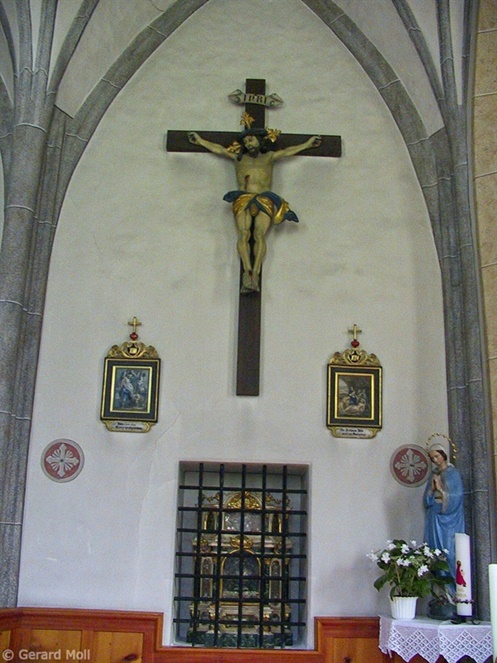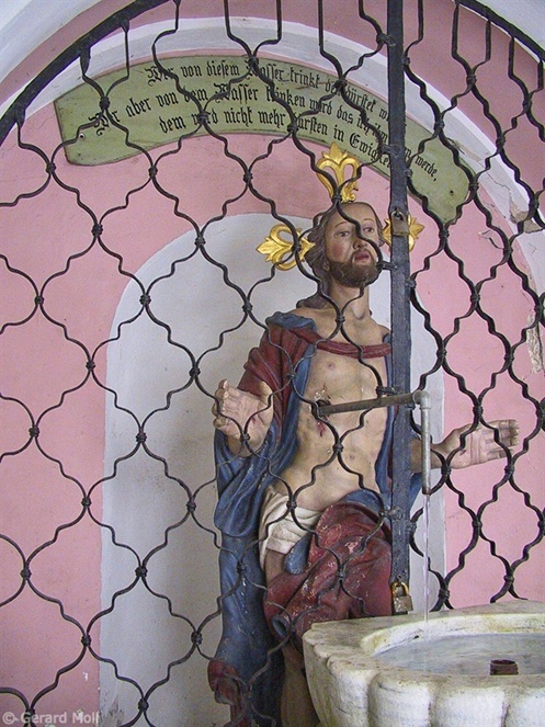 Bild in Lightbox öffnen (open image in lightbox). Die im 17. Jahrhundert Brunnenkapelle in Außertal erbaute Kapelle beherbergt eine interessante Holzskulptur, eine Christusfigur mit dem Brunnenrohr in der Seitenwunde.