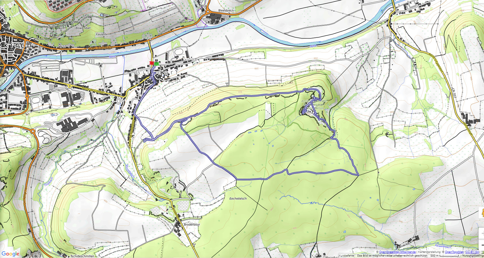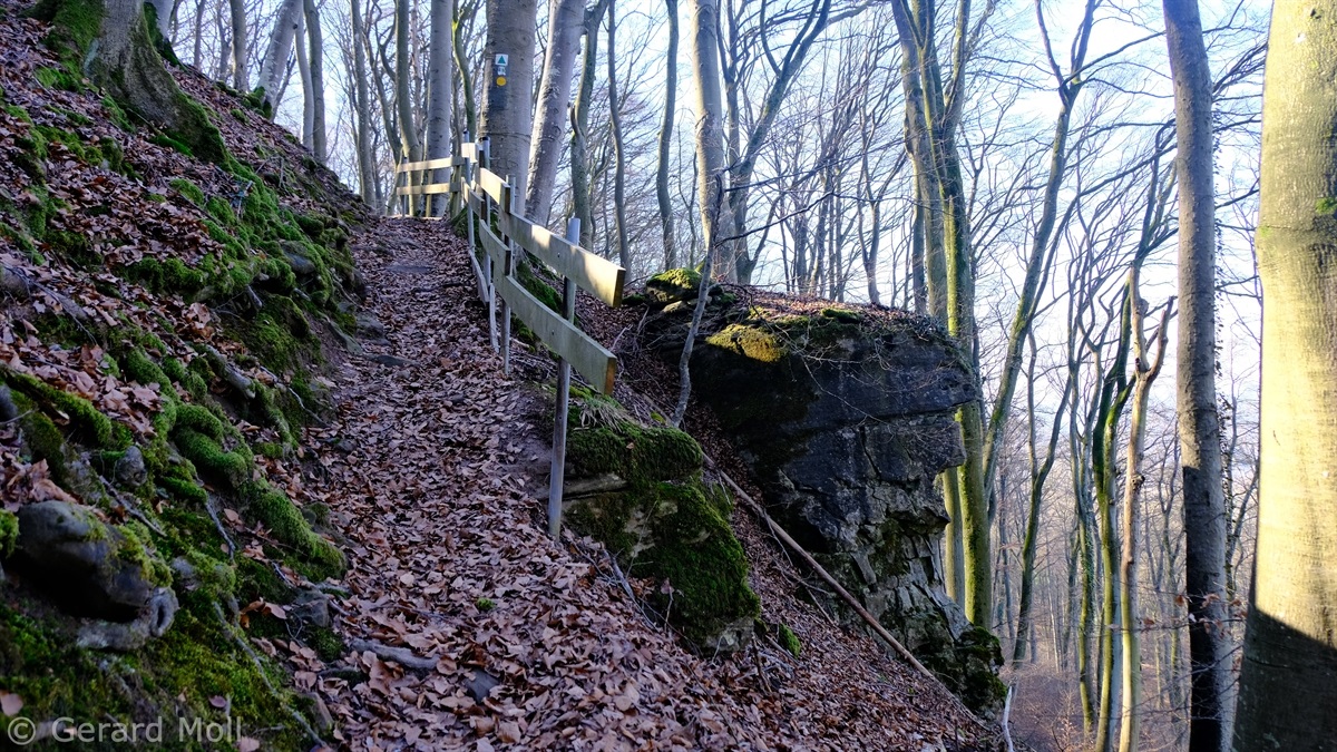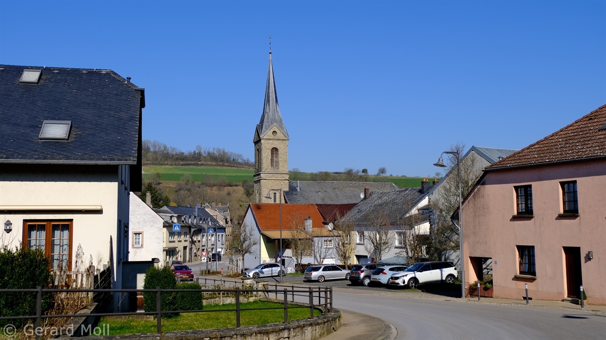 Vom Zentrum von Gilsdorf steigen wir durch Wiesen hinauf zum Wald. Der Rundweg bringt uns an Felsen vorbei zum Naturschutzgebiet am ehemaligen Steinbruch Schoofsboesch. Durch Wald und über Felder schließen wir den Rundweg, doch ehe wir wieder nach Gilsdorf absteigen, machen wir noch einen kleinen Abstecher zur Lourdes-Grotte.