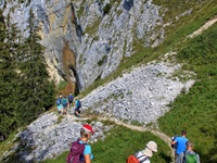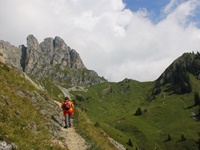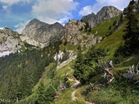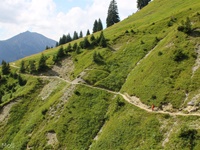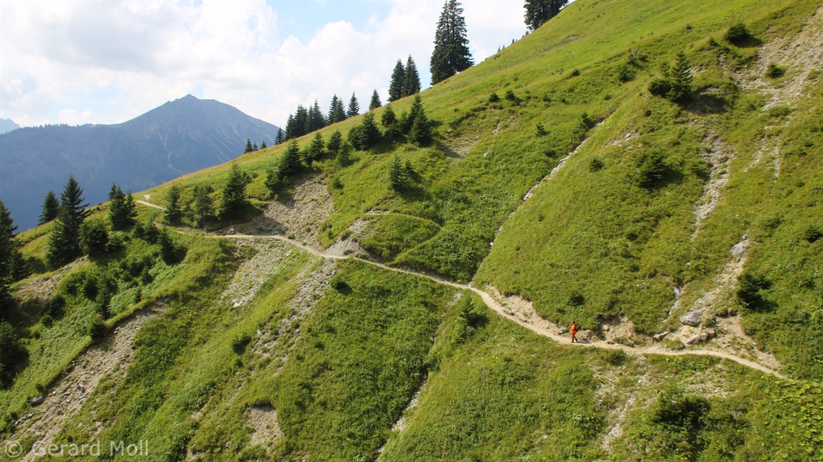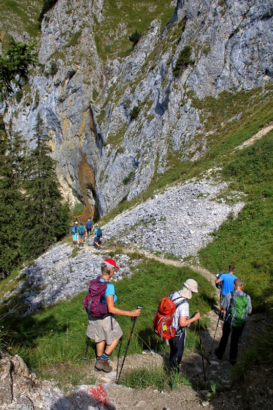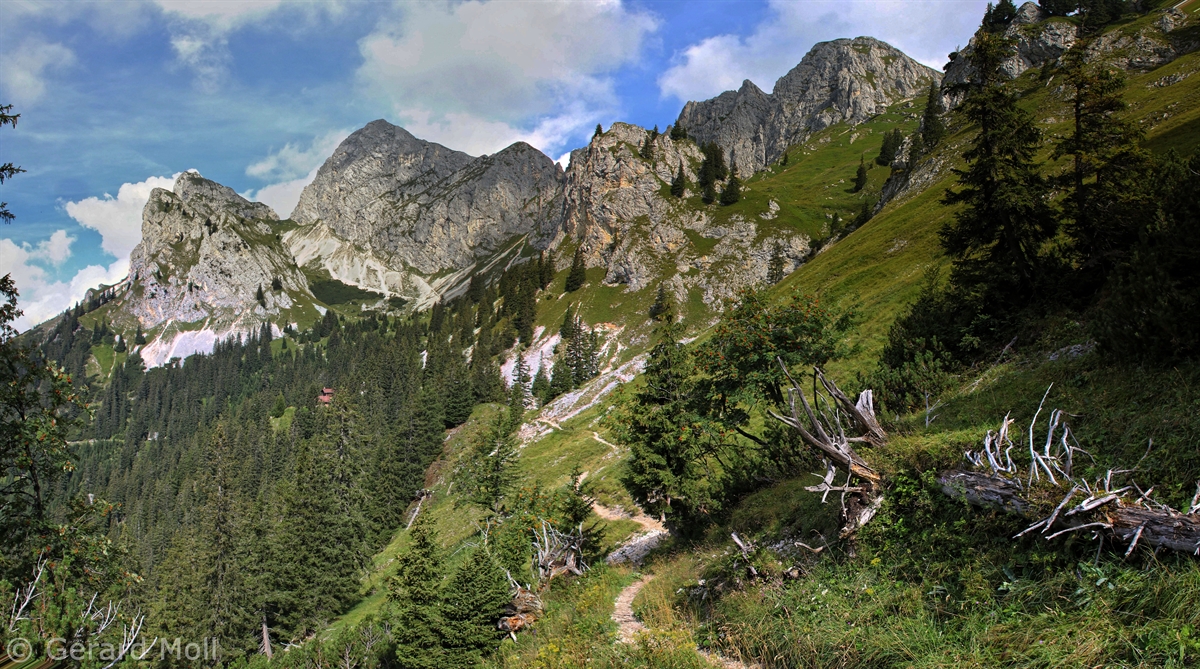 Von Nesselwängle (1157 m) steigen wir auf steilem Pfad zum Gimpelhaus (1659 m) auf. Dann führt uns ein schöner Höhenweg vorbei an der Tannheimer Hütte (1713 m) zur Schneetalalpe (1630 m), ehe wir wieder nach Nesselwängle absteigen.