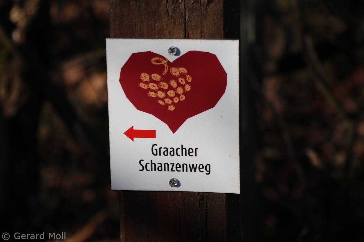 Nach dem schönen Himmelreich Wanderweg haben wir uns noch den Graacher Schanzenweg gegönnt. Er startet ebenfalls von dem Parkplatz an der Traver Ruh und führt zunächst steiler hinauf bis zu den Graacher Schanzen, einer von preußischen Soldaten 1794 angelegten Befestigungsanlage. Hier überquert man auch die neue, vom Hochmoselübergang herkommende B50 neu. Die Eiserne Weinkarte, der Aussichtspunkt Maria Zill, ein Abstecher zum Horsten Kreuz und die Waldschenke zur Eisernen Weinkarte sind die weiteren Stationen dieses interessanten Weges.