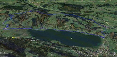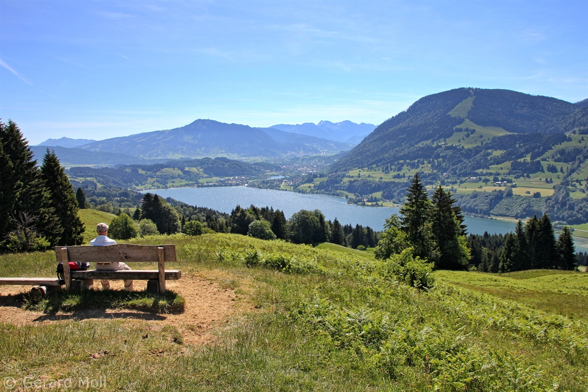 Vom Parkplatz am Alpsee (733 m) führt unser Weg über den Weiler Zaumberg zur Siedelalpe (973 m) und weiter zur Pfarralpe auf 1060 m. Bevor wir zum Alpsee absteigen genießen wir noch die herrliche Aussicht vom Alpseeblick.