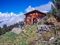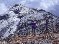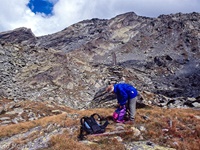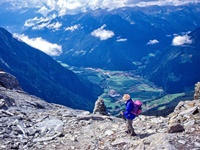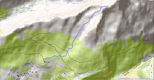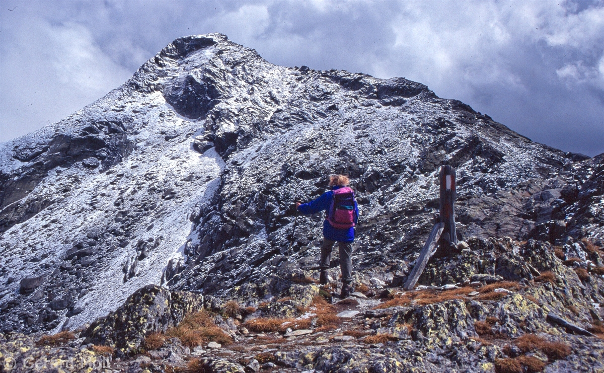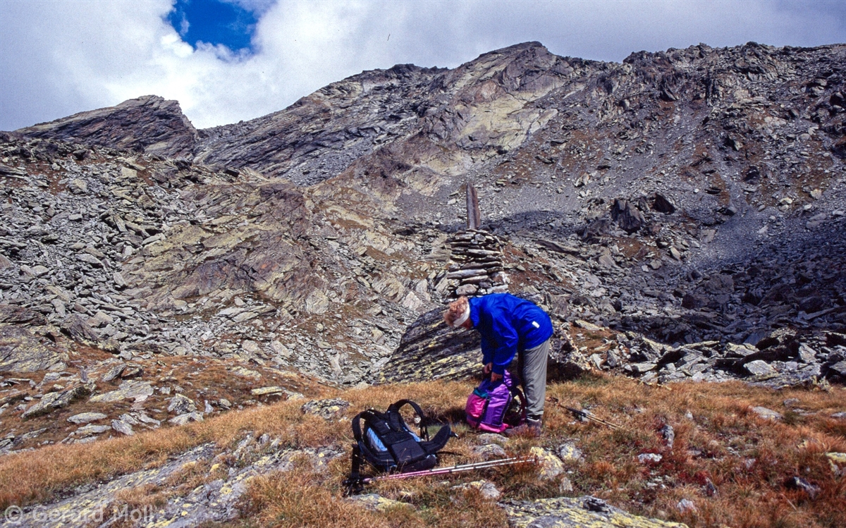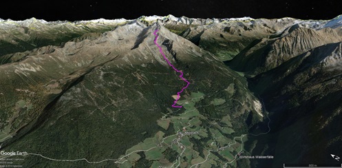 Der Parkplatz befindet sich oberhalb von Ahornach auf etwa 1550 m. Zuerst geht es hinauf zu den "Schlafhäusern" (2009 m), dann wird der Weg steiler und felsiger, bis wir eine Höhe von etwa 2800 m erreichen. Noch fehlen uns 250 m zum Gipfel des Grossen Moosstock (3059 m), aber da die Felsen von einer Eisschicht überzogen sind, drehen wir schweren Herzens um.