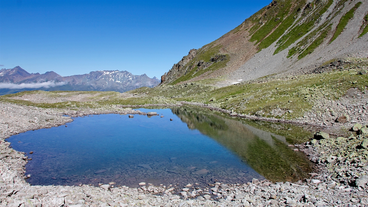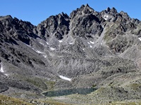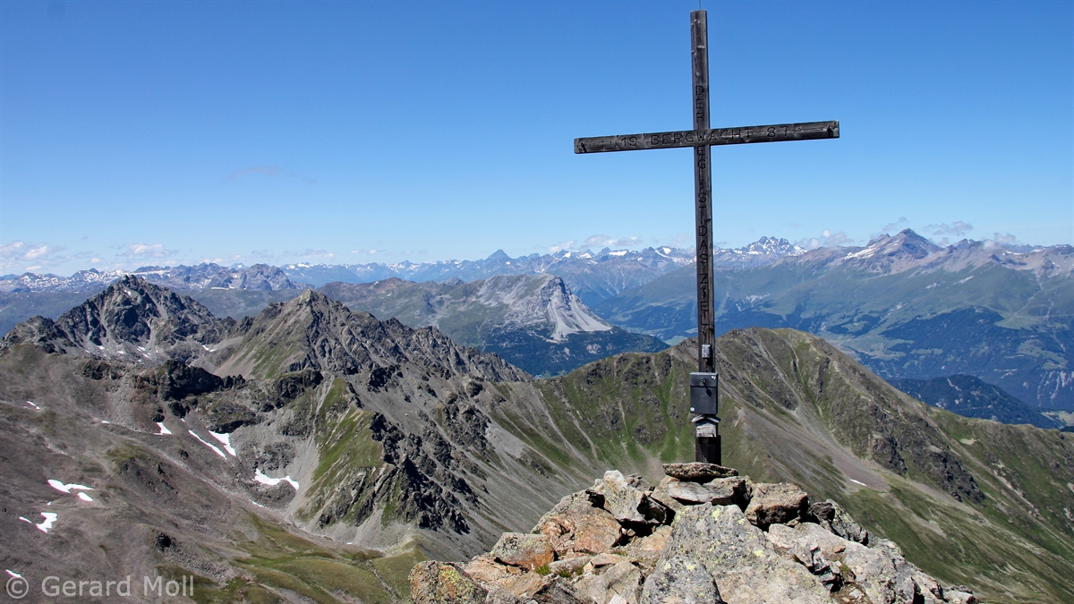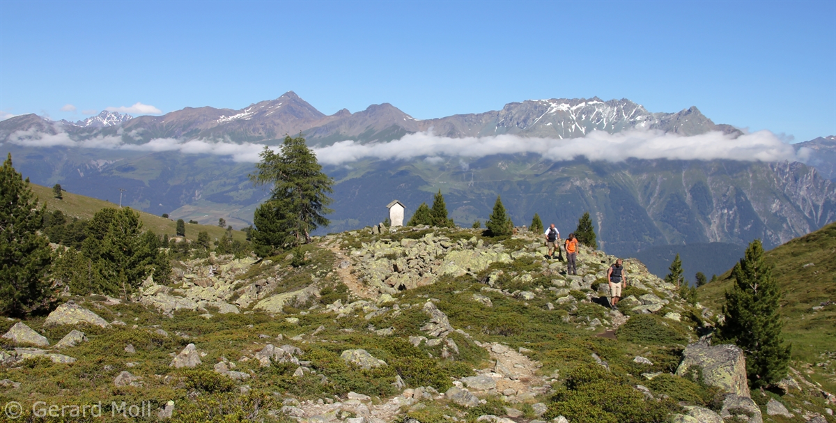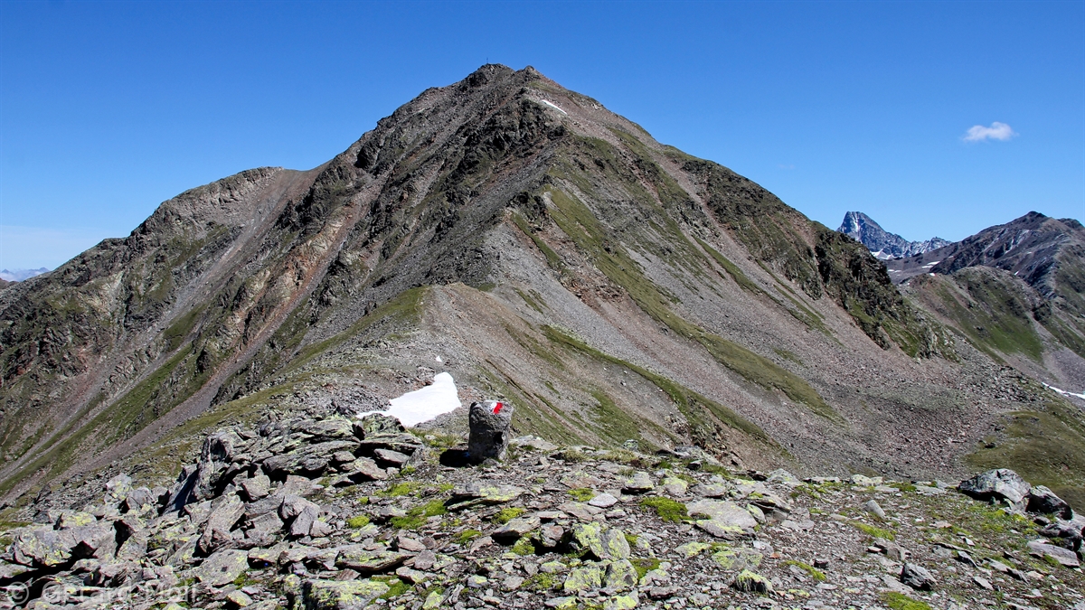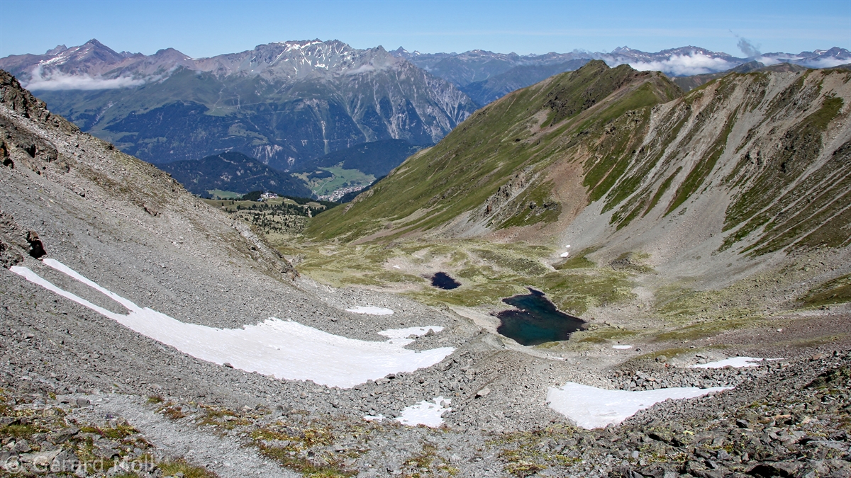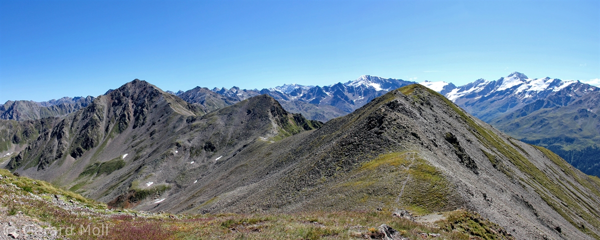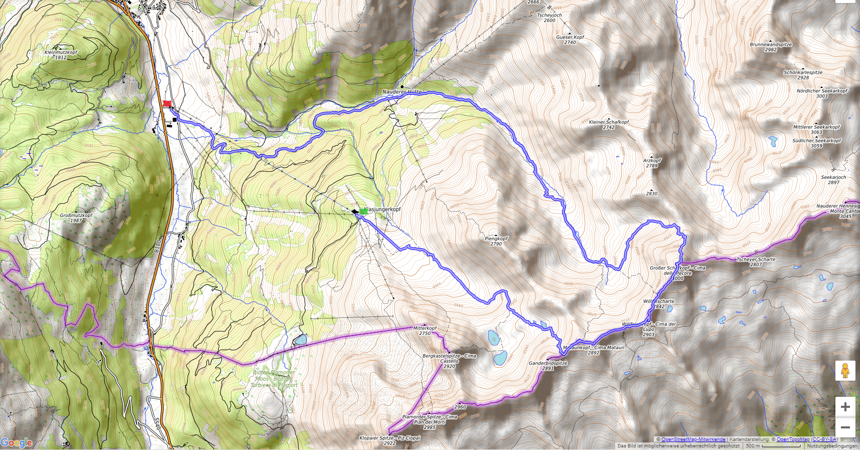 Die Seilbahn bringt uns von Nauders zur Bergstation auf 2163 m Höhe. Zuerst flach, dann stärker ansteigend wandern wir an den Goldseen vorbei zur Pedross-Scharte (2797 m). Hier beginnt dann die schöne Tour über den Grat, der über den Mataunkopf (2893 m) und den Wölfeleskopf (2893 m) zum Grossen Schafkopf (3001 m) leitet. Als Abstieg wählen wir den Weg durch das Knappenkar zur Goldseehütte (1866 m) und zurück zur Talstation der Seilbahn (1408 m).