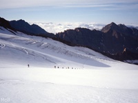 Von Hinterbichl im Virgental fahren wir mit dem Wanderbus bis zur Johannishütte (2121 m) und wandern zum Defregger Haus (2963 m), wo wir übernachten. Am nächsten Morgen steigen wir über das Mullwitzkees zum Rainertörl (3421 m) auf und erreichen über den Oberen Keesboden den Gipfel des Grossvenedigers (3666 m). Beim Abstieg machen wir noch einen Abstecher zum Rainerhorn (3559 m).