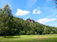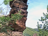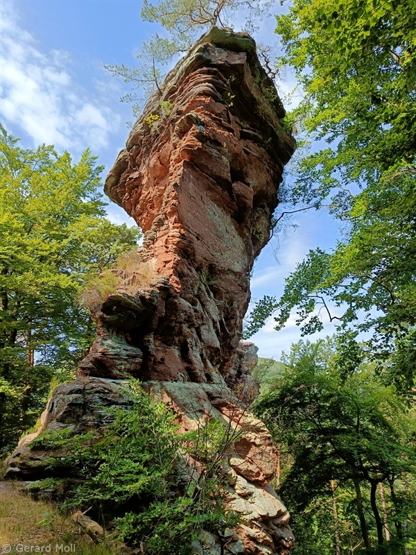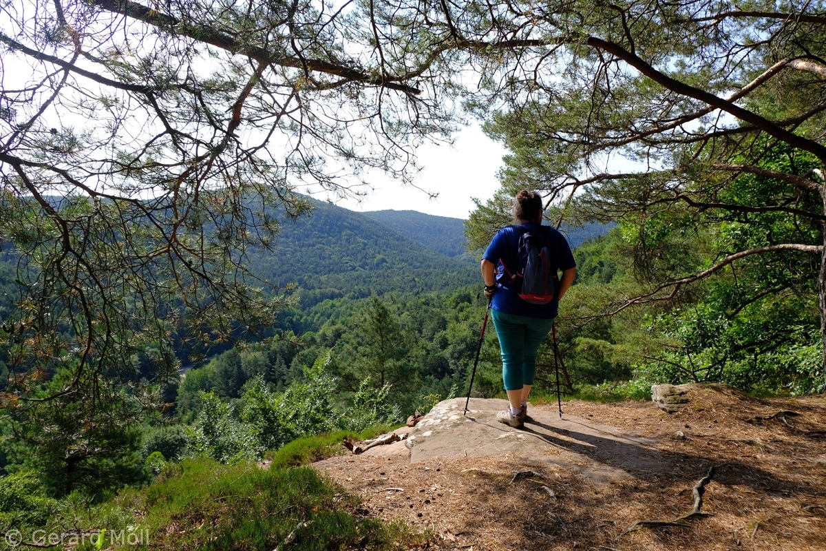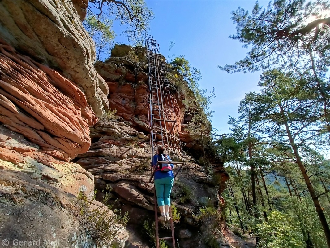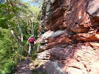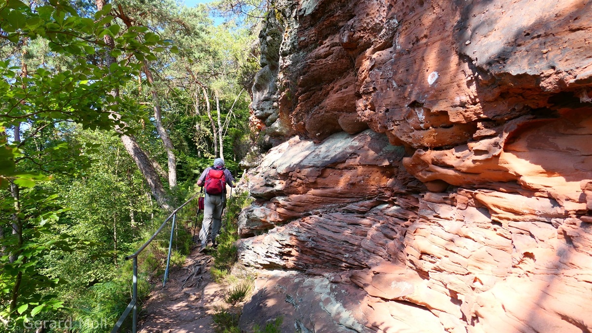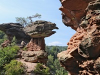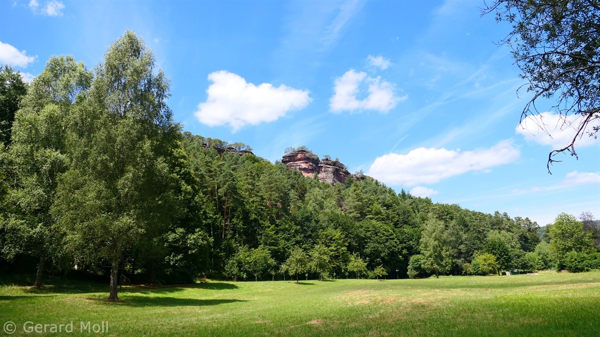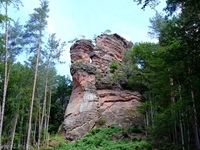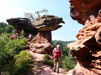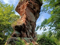 Vom Parkplatz am Freibad in Hauenstein führt der Weg sofort hoch zu dem ersten Höhepunkt, dem Lanzenrather Fels, dessen Gipfel über eine steile Leiter erreicht werden kann. Dann folgt der Burghalder, auf dem sich einst eine Fliehburg befand. Wir wandern weiter vorbei an Felsen wie dem Hasenteller und dem beeindruckenden Wolfsfelsen, ehe wir das Wanderheim zur Dicken Eiche erreichen. Nach einer Rast geht es weit hinunter bis zu der Queichquelle. Wir folgen dem schönen Tal bis zu dem Paddelweiher und kehren durch den Altwiesen-Park zurück zum Schwimmbad.