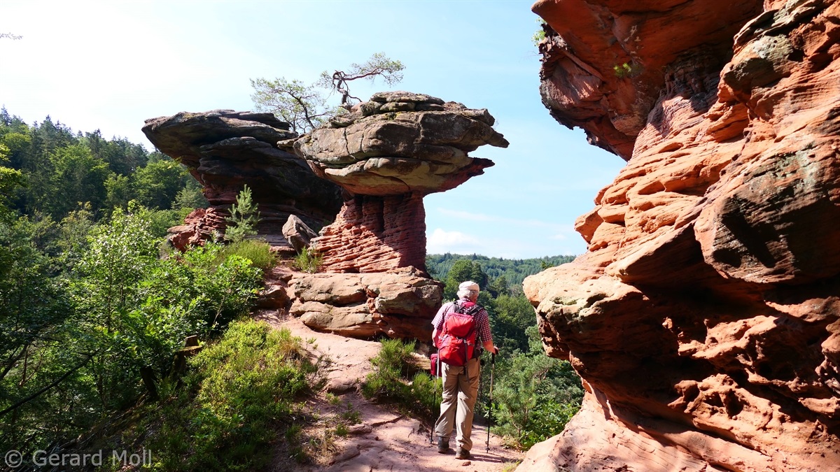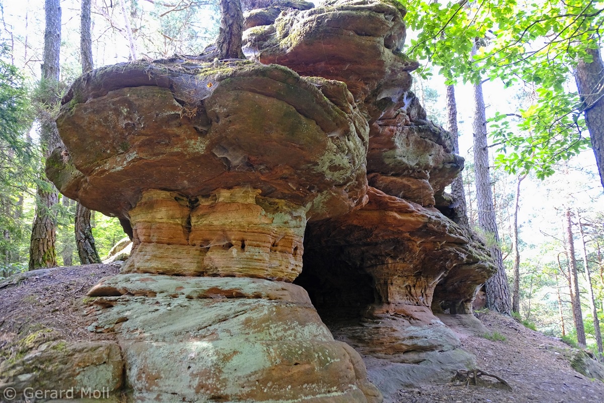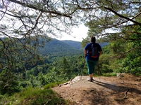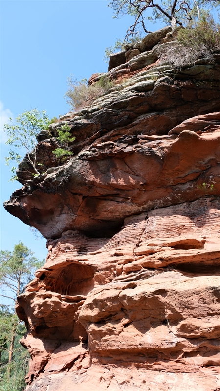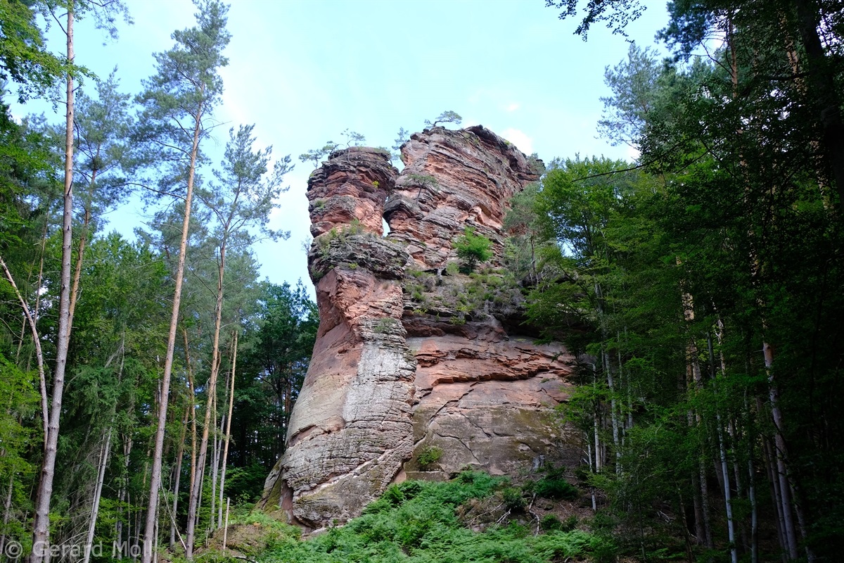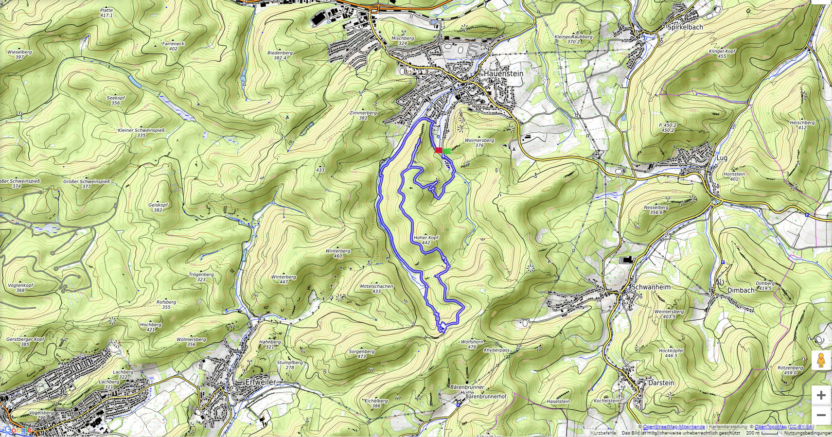 Vom Parkplatz am Freibad in Hauenstein führt der Weg sofort hoch zu dem ersten Höhepunkt, dem Lanzenrather Fels, dessen Gipfel über eine steile Leiter erreicht werden kann. Dann folgt der Burghalder, auf dem sich einst eine Fliehburg befand. Wir wandern weiter vorbei an Felsen wie dem Hasenteller und dem beeindruckenden Wolfsfelsen, ehe wir das Wanderheim zur Dicken Eiche erreichen. Nach einer Rast geht es weit hinunter bis zu der Queichquelle. Wir folgen dem schönen Tal bis zu dem Paddelweiher und kehren durch den Altwiesen-Park zurück zum Schwimmbad.