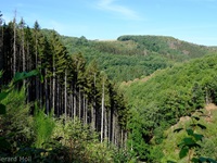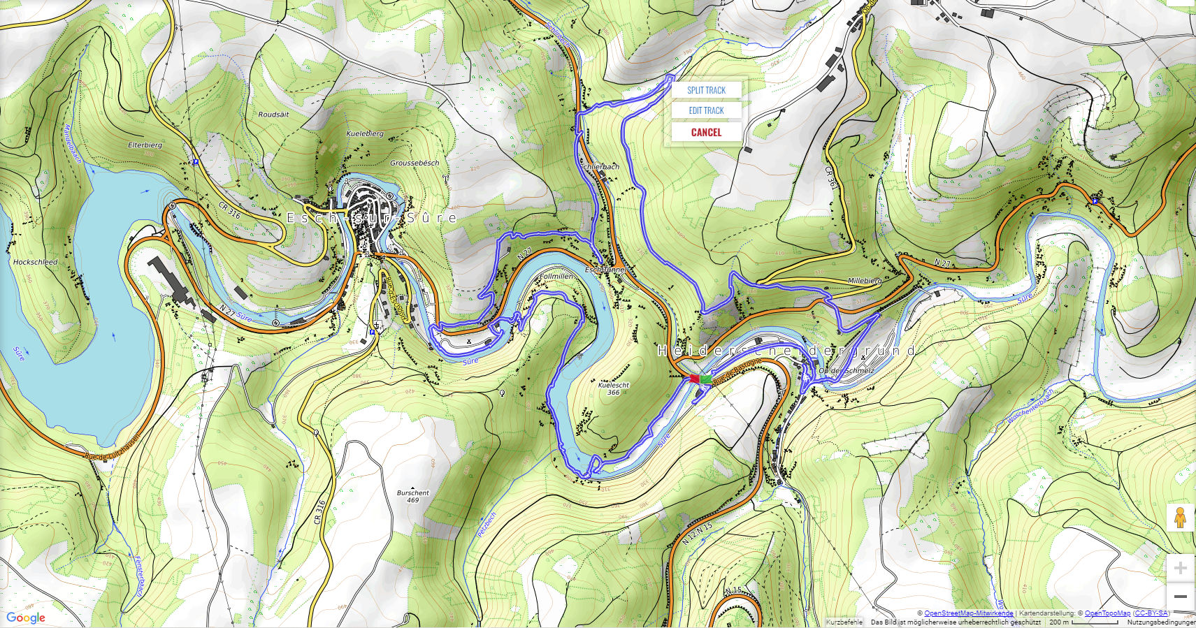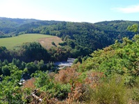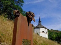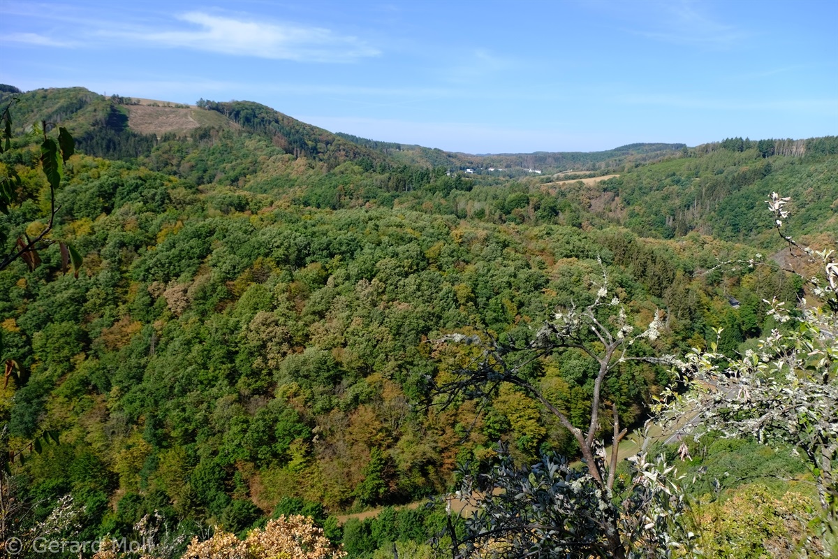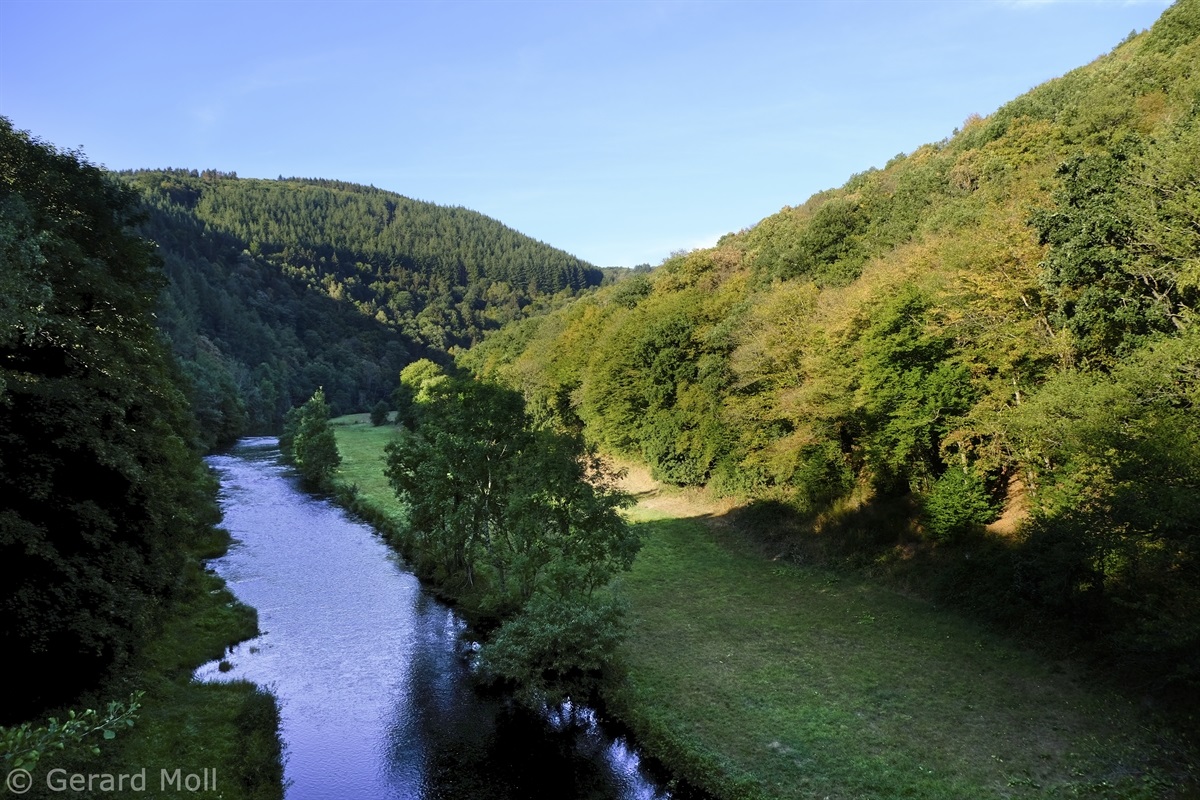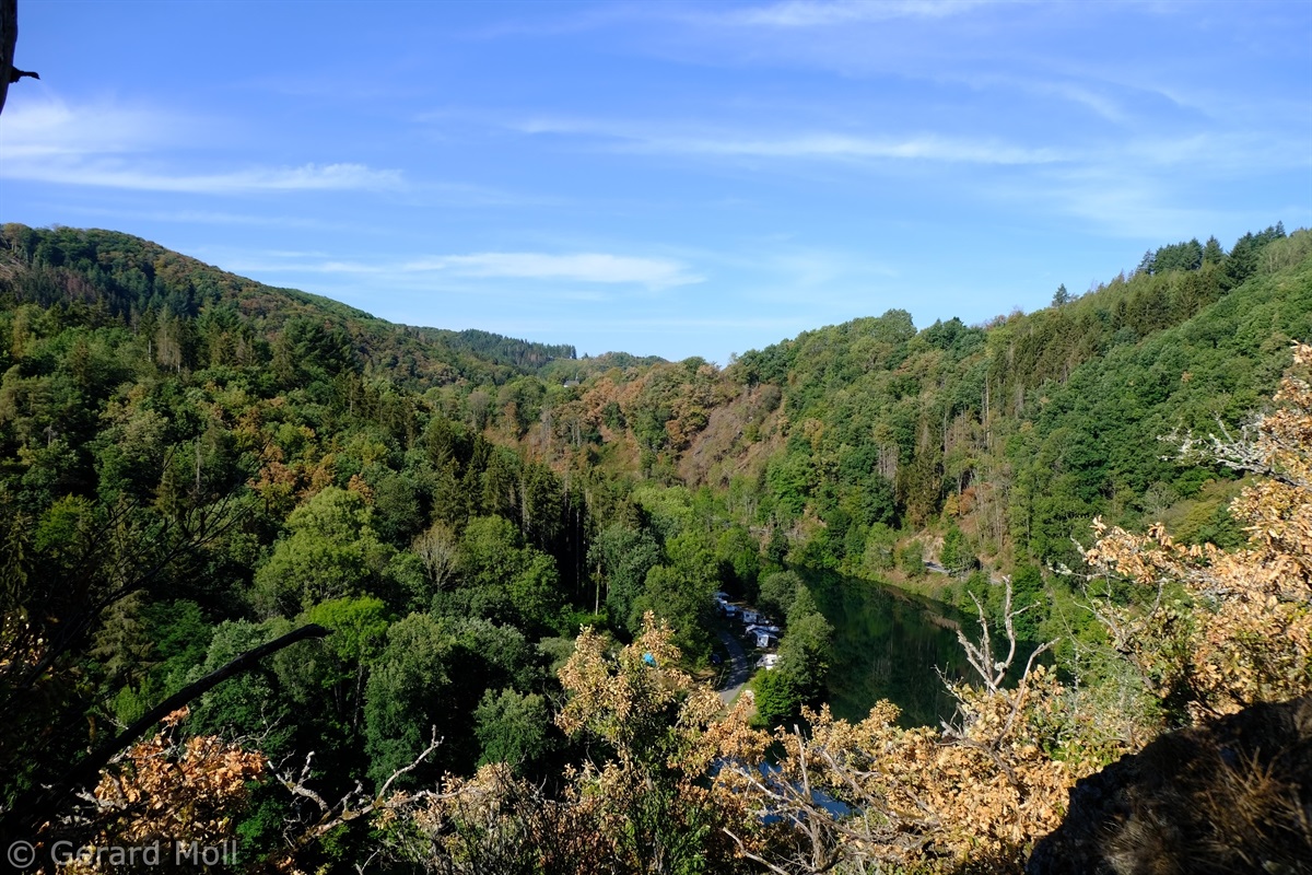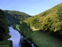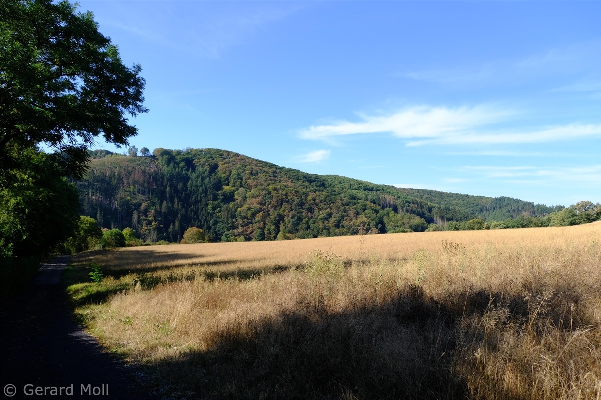 Wir starten im Heiderscheidergrund bei dem Hotel Bissen. Wir folgen dem Lauf der Sauer, die wir über ein Wehr überqueren. Nach einiger Zeit verlassen wir die Fahrradpiste, überschreiten einen Hügel und steigen steil hinab zum Campingplatz "Im Aal". Ein weiterer Aufstieg bringt uns zu dem "Këtschleedchesbierg" mit einer sehr schönen Aussicht. Wir überqueren vorsichtig die Hauptstraße und steigen hinauf zu zwei schön gelegenen Bänken, von denen wir auf unseren Ausgangspunkt blicken. Ab hier führt der Weg uns hinunter ins Sauertal. Bei den Campingplätzen machen wir noch einen Abstecher zu der achteckigen Kapelle, ehe wir durch eine Unterführung unser Ziel erreichen.