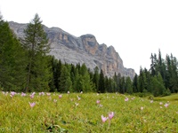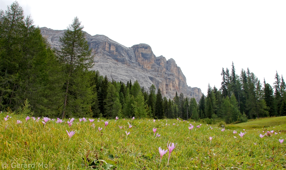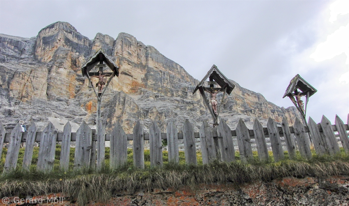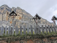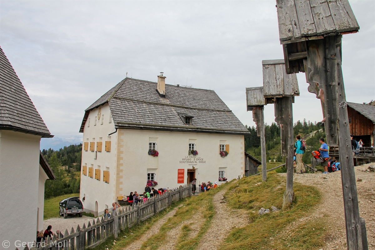 Wir gehen am Ende des Tales von Wengen (La Valle) auf 1525 m los und folgen dem Kreuzweg bis zum Schutzhaus Heiligkreuz (2045 m) unter den mächtigen Wänden des Heiligkreuzkofels.