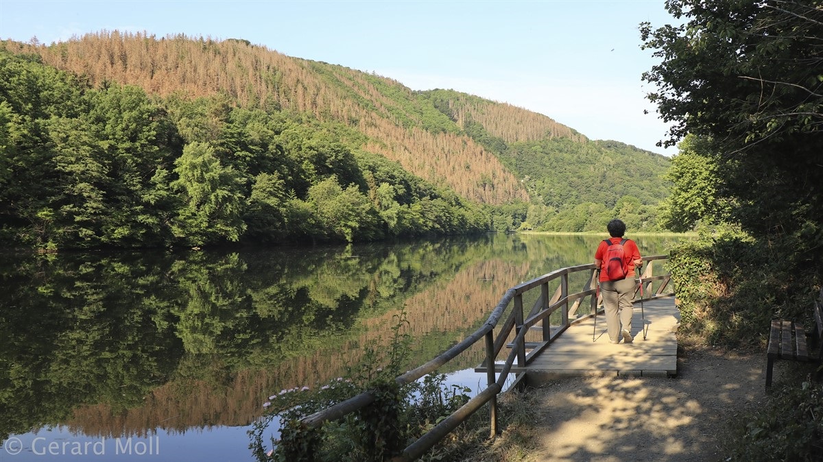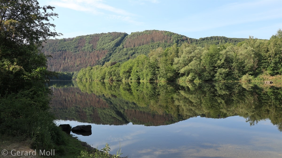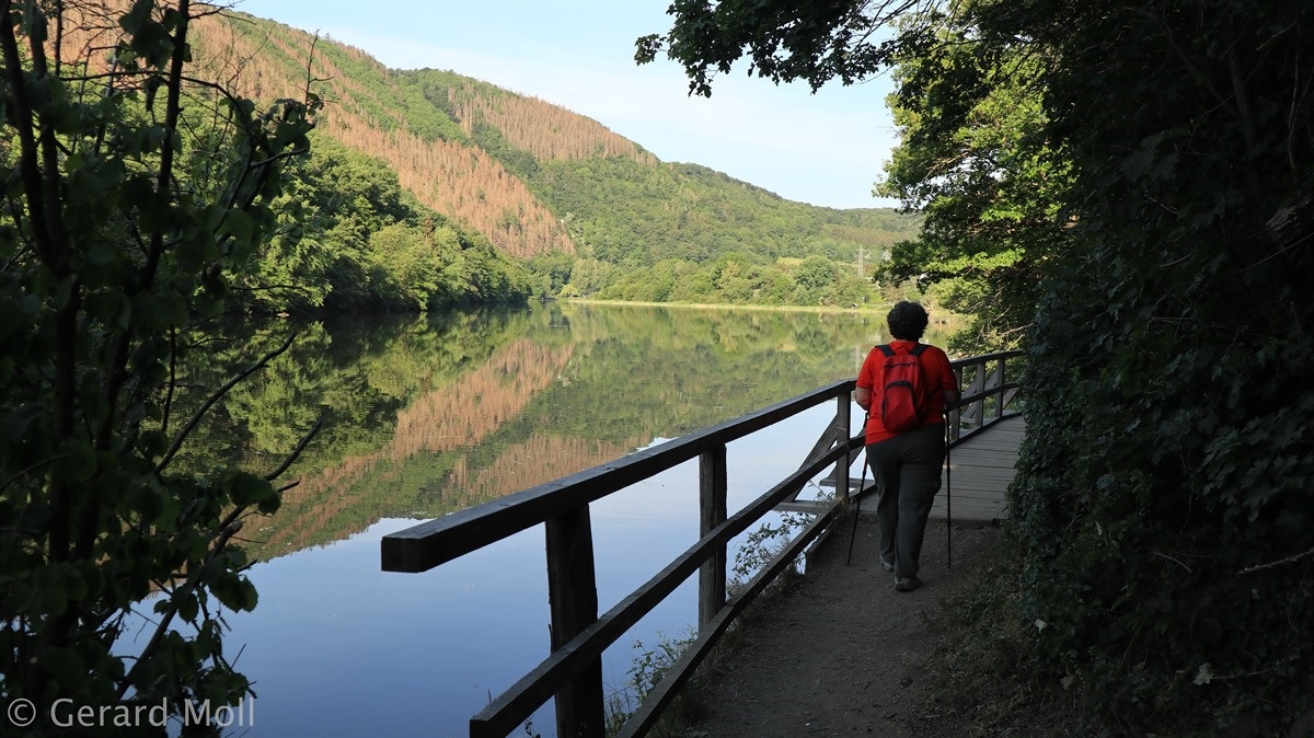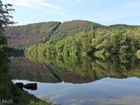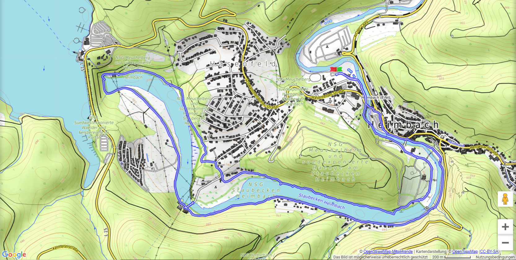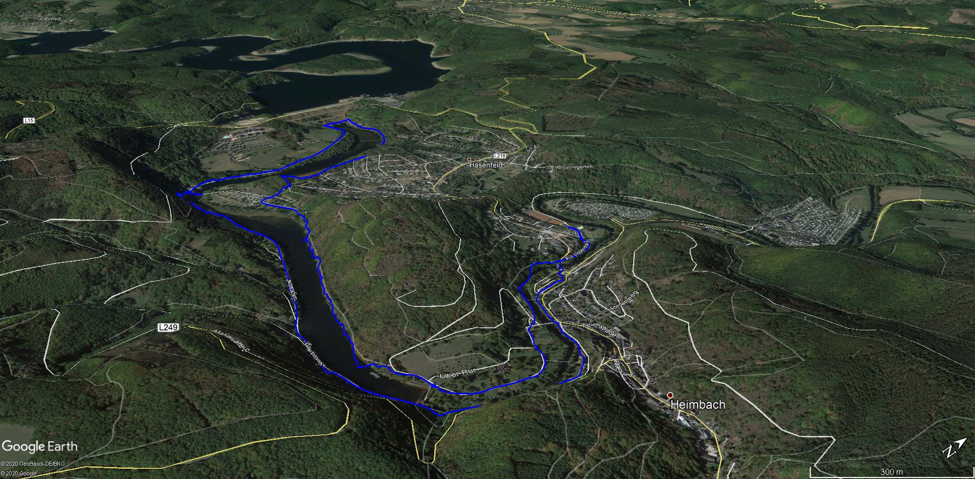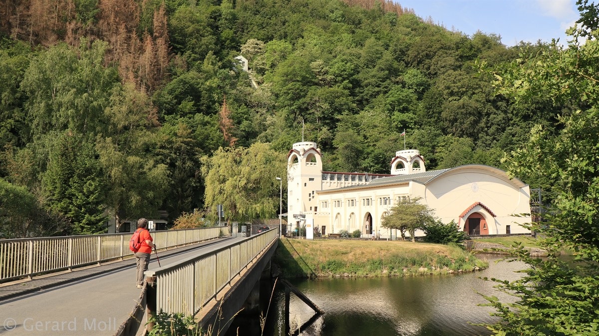 Wer bei der vorhergehenden Tour den Aufstieg bis zum Kloster Maria Wald scheut, kann auch von Heimbach aus um das Staubecken wandern. Von Heimbach gehen wir am nördlichen Ufer bis zur Staumauer Schwammenauel, dann geht es bis zum Jugendstil-Kraftwerk und schließlich am südlichen Ufer zurück nach Heimbach.