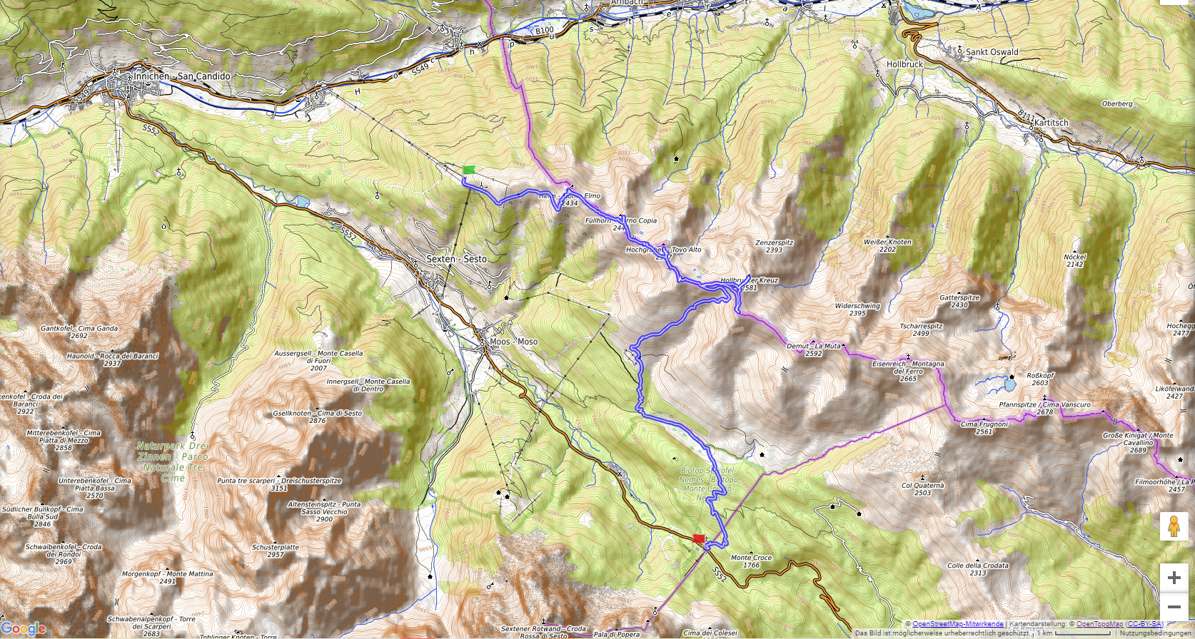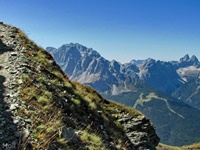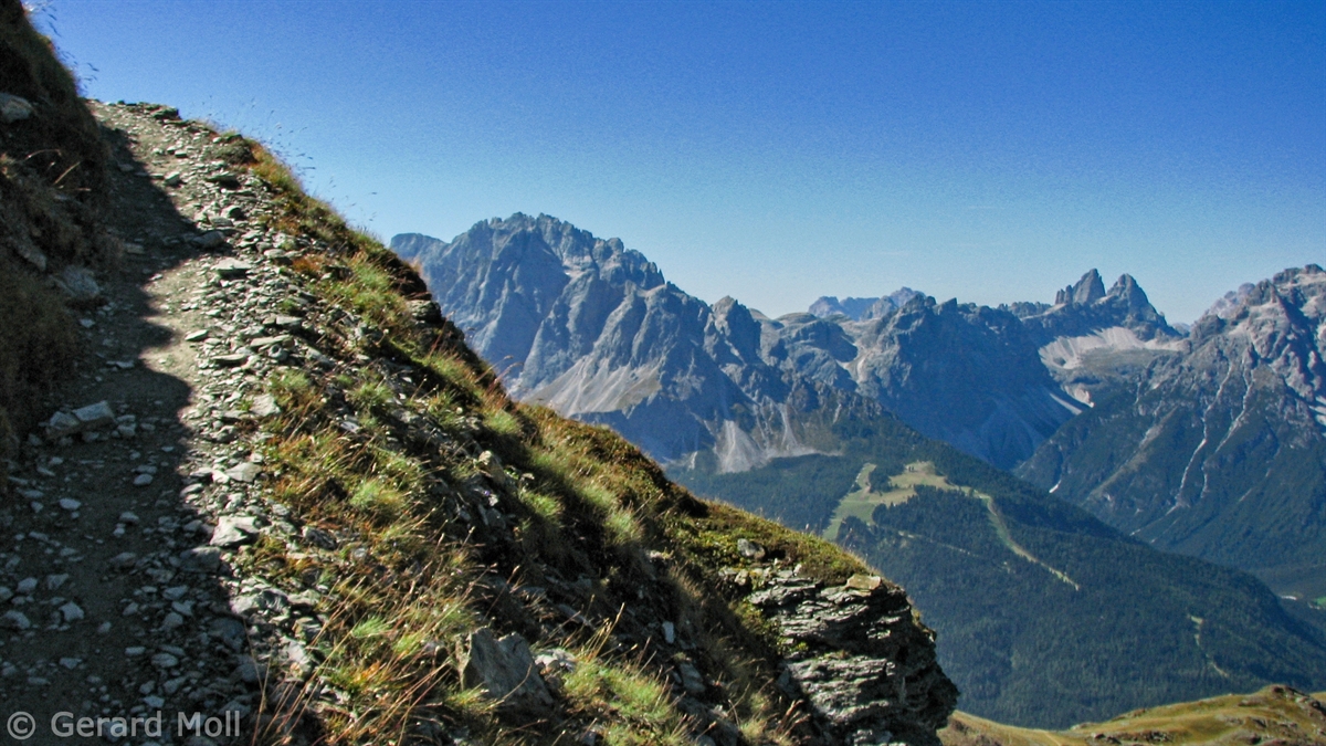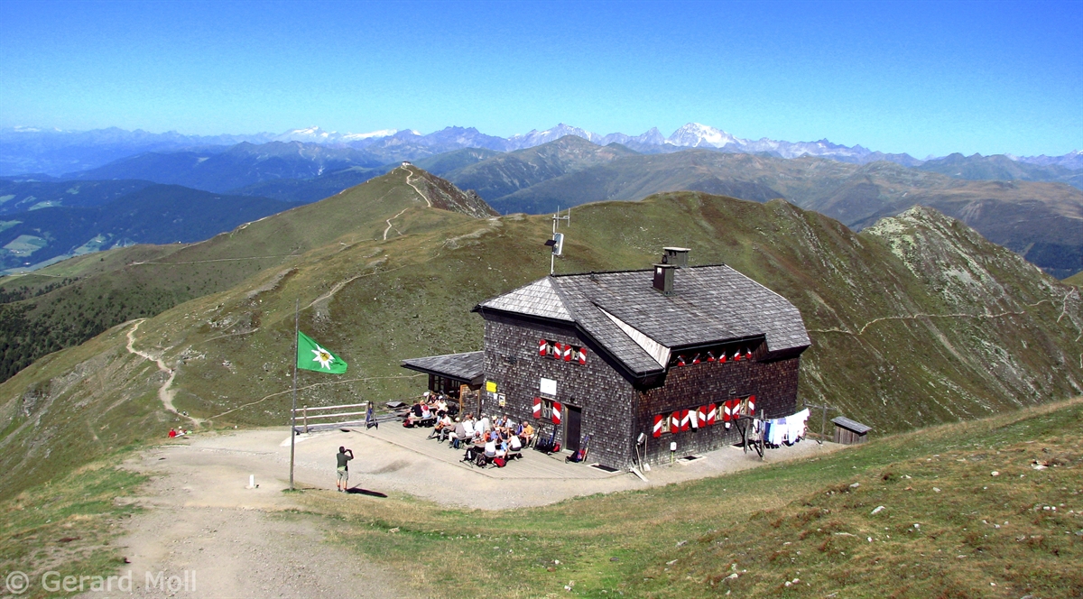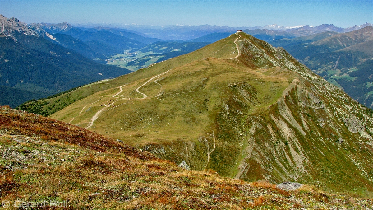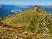 Ausgangspunkt ist die Bergstation der Helmbahn (2041 m). Vorbei an der Hahnspielhütte besteigen wir zuerst den Helm (2433 m), dann wird über das Füllhorn (2445 m) die Sillianer Hütte (2447 m) erreicht. Nach dem Hochgruben (2538 m) und dem Hornischegg (2550 m) folgt als letzter Gipfel die Hollbrücker Spitze (2580 m). Immer wieder treffen wir auf Überreste aus dem ersten Weltkrieg. Wir gehen ein kurzes Stück zurück und steigen über die Klammbachalm (1944 m) hinunter zum Kreuzbergpass (1636 m).