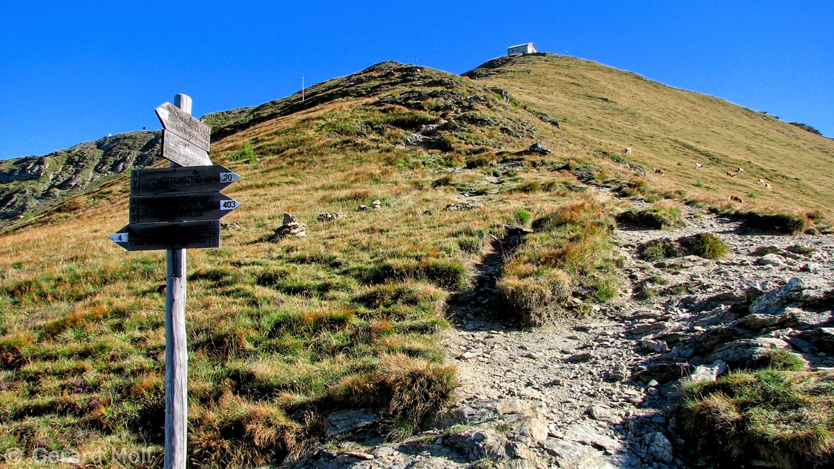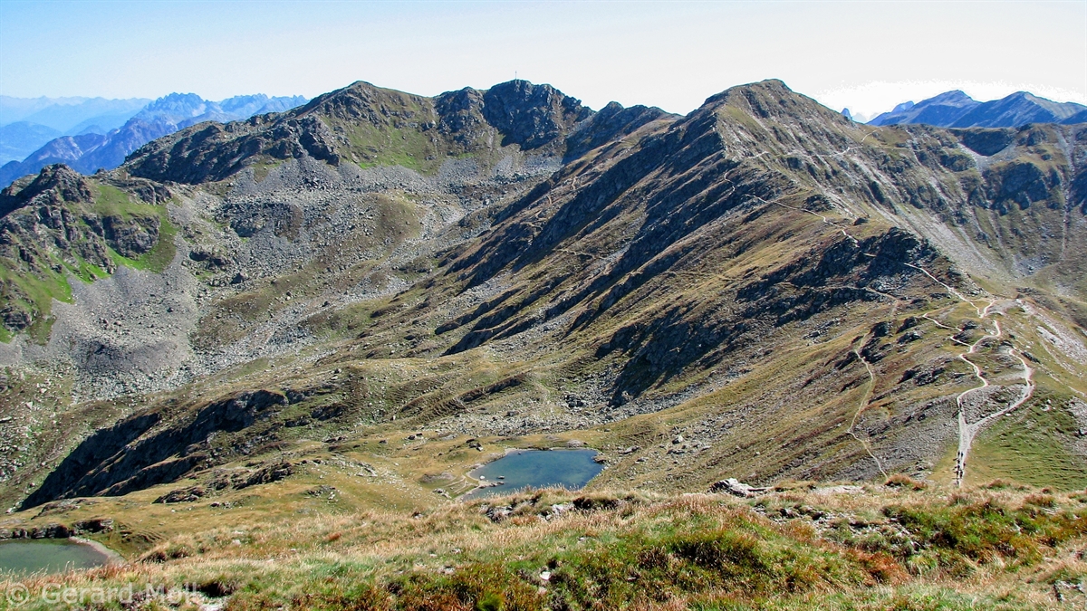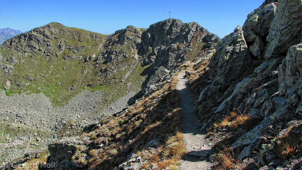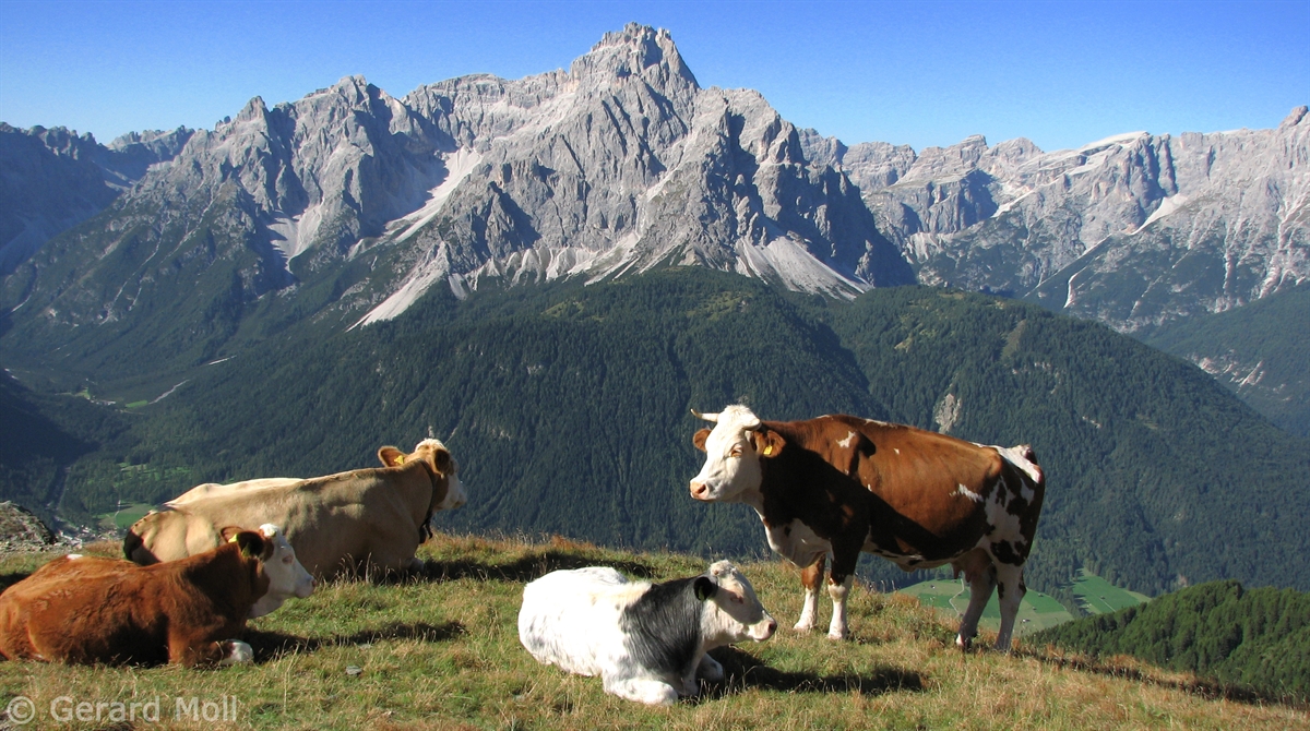 Ausgangspunkt ist die Bergstation der Helmbahn (2041 m). Vorbei an der Hahnspielhütte besteigen wir zuerst den Helm (2433 m), dann wird über das Füllhorn (2445 m) die Sillianer Hütte (2447 m) erreicht. Nach dem Hochgruben (2538 m) und dem Hornischegg (2550 m) folgt als letzter Gipfel die Hollbrücker Spitze (2580 m). Immer wieder treffen wir auf Überreste aus dem ersten Weltkrieg. Wir gehen ein kurzes Stück zurück und steigen über die Klammbachalm (1944 m) hinunter zum Kreuzbergpass (1636 m).