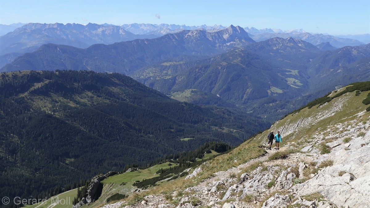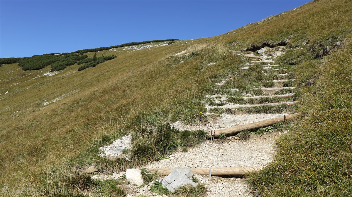 Von der Strasse zum Ursprungpass zweigt eine schmale Mautstrasse ab, die bis zur Ackernalm (1338 m ) führt. Wir folgen dem Weg 11, halten uns bei einer Abzweigung rechts und erreichen so den Südhang des Berges. Nach einem Gatter führt ein steiler Steig bis hinauf zum aussichtsreichen Gipfel des Hinteren Sonnwendjochs (1986 m). Der Rückweg erfolgt auf dem Aufstiegsweg oder über die Bärenbadalm.