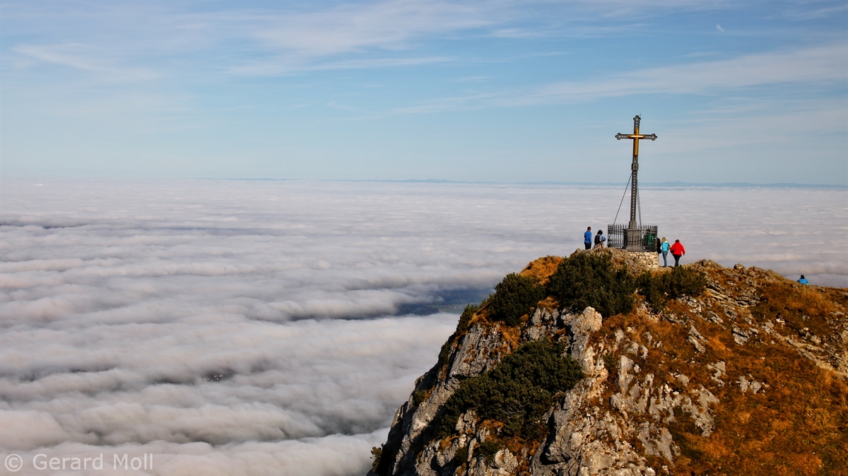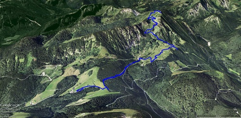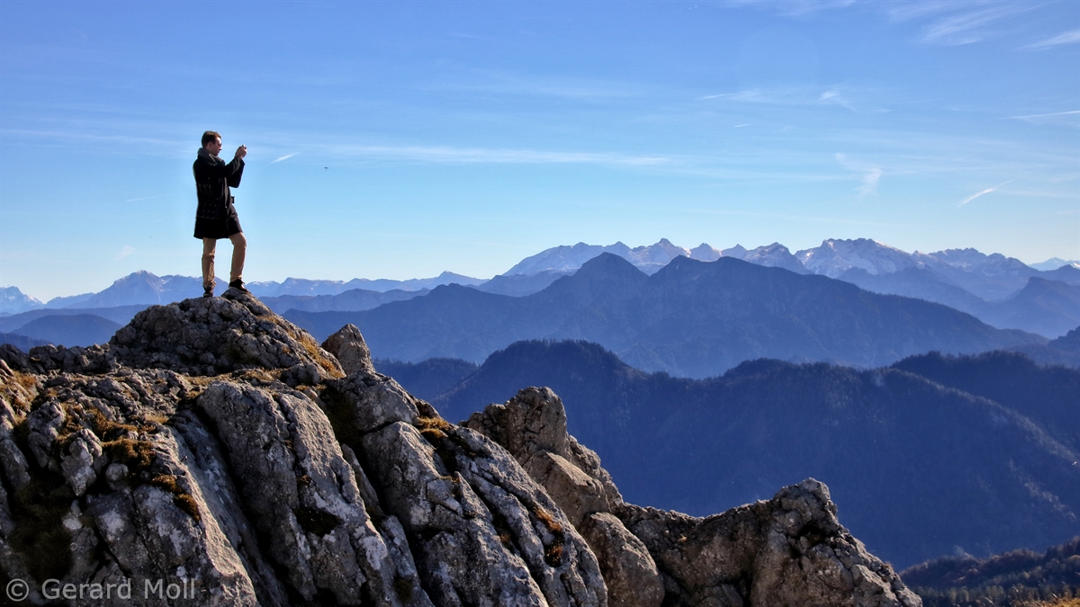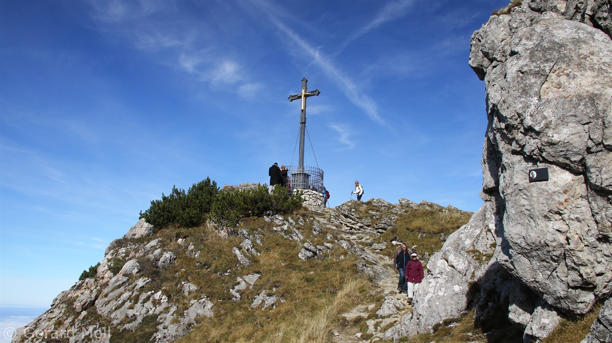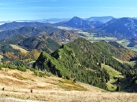Von Ruhpolding fahren wir bis zum gebührenpflichtigen Parkplatz an der Steinbergalm (1000 m). Über die Bründlingalm steigen wir hinauf zum Gipfel des Hochfelln (1674 m), auf dem neben der Bergstation der Seilbahn das Hochfellnhaus steht.