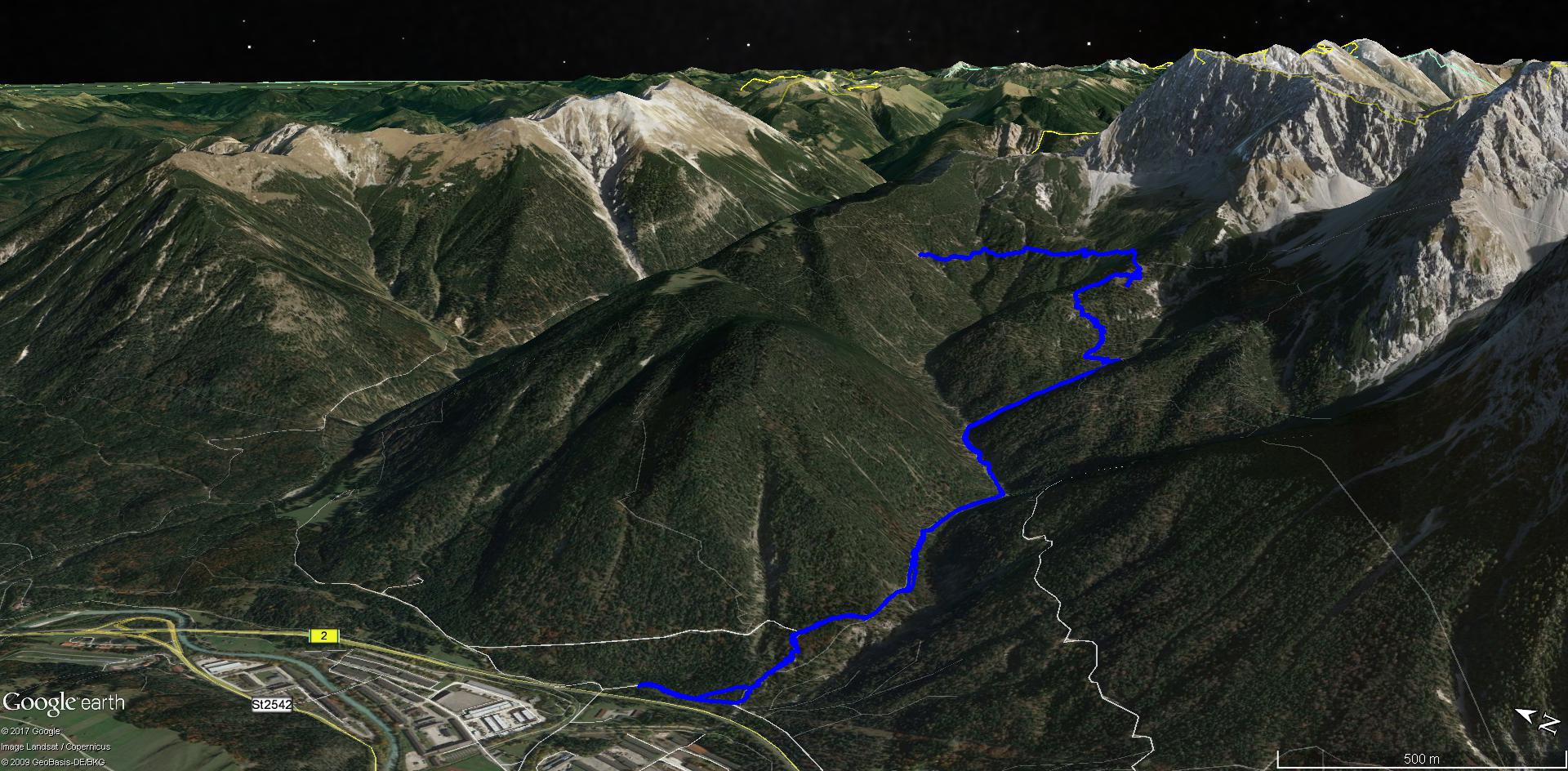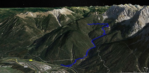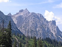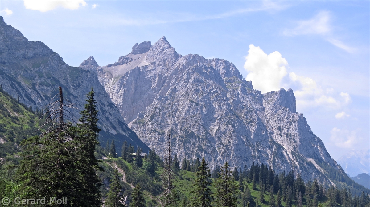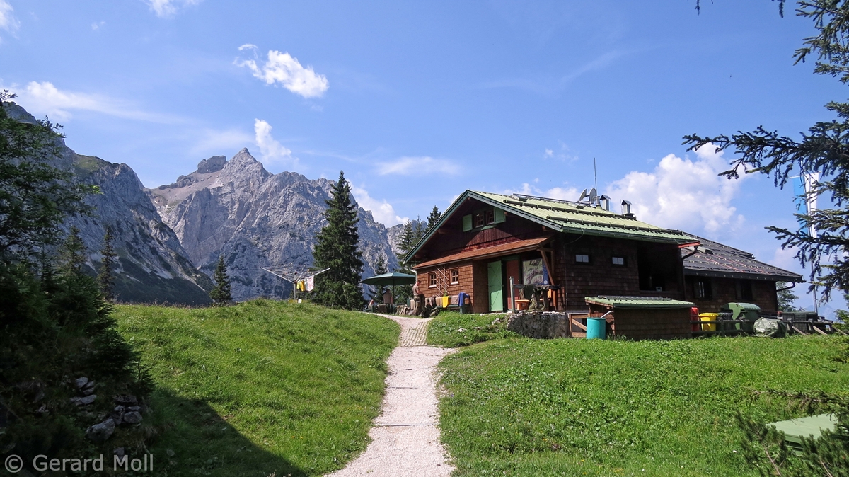 Von den Kasernen in Mittenwald (910 m) führt in 2 Stunden ein guter Weg zu der schön gelegenen Hochlandhütte (1623 m)