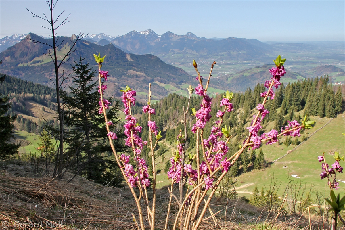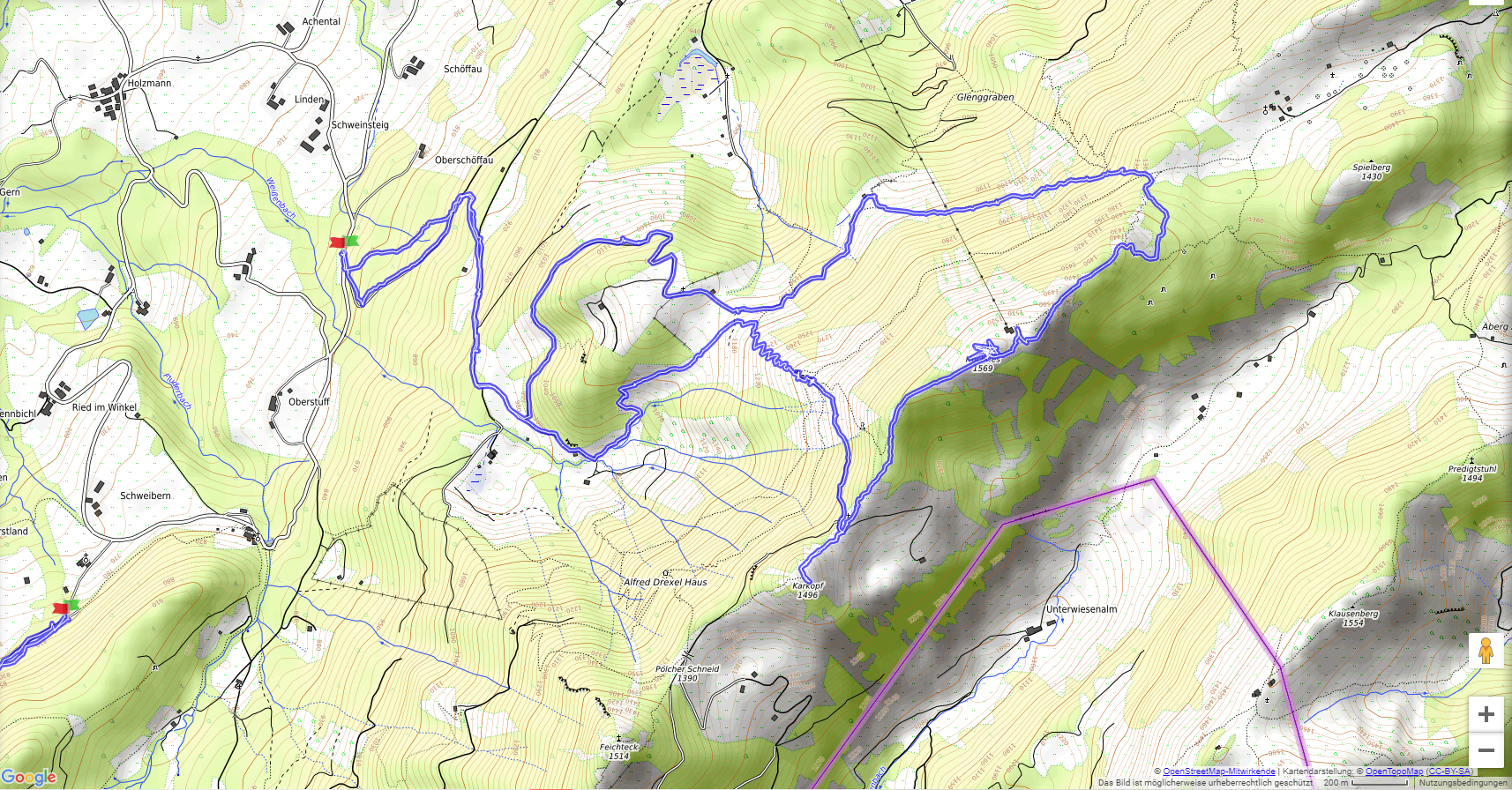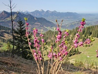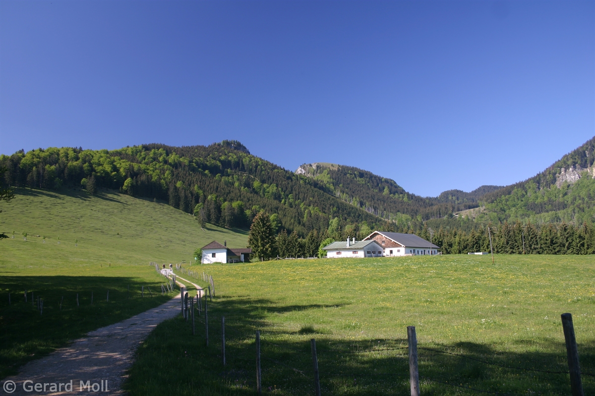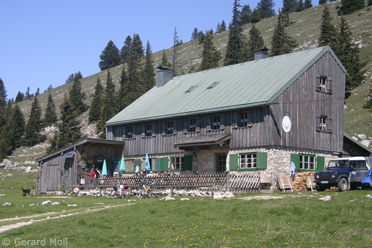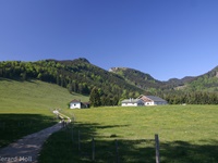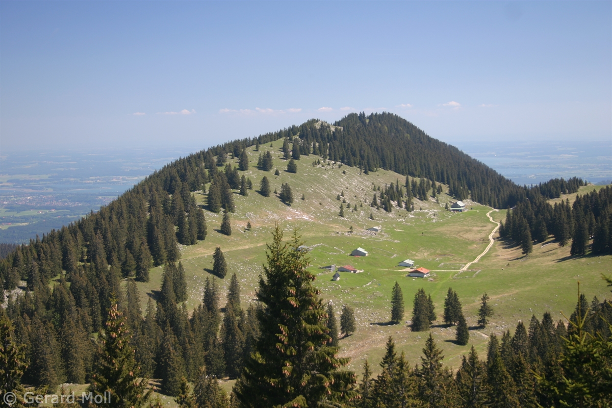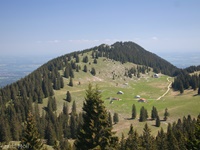 Zwar ist die Hochries (1568 m) auch mit der Seilbahn erreichbar, aber wir nehmen den Gipfel lieber zu Fuss in Angriff. Entweder steigen wir vom Parkplatz (756 m) auf dem Samerberg unweit des Duftbräus über die Seitenalm auf, oder wir starten in Aschau (623 m) und gehen über die Hofalm vorbei am Riesenberg zur Riesenhütte (1346 m) und von dort zum Gipfel.