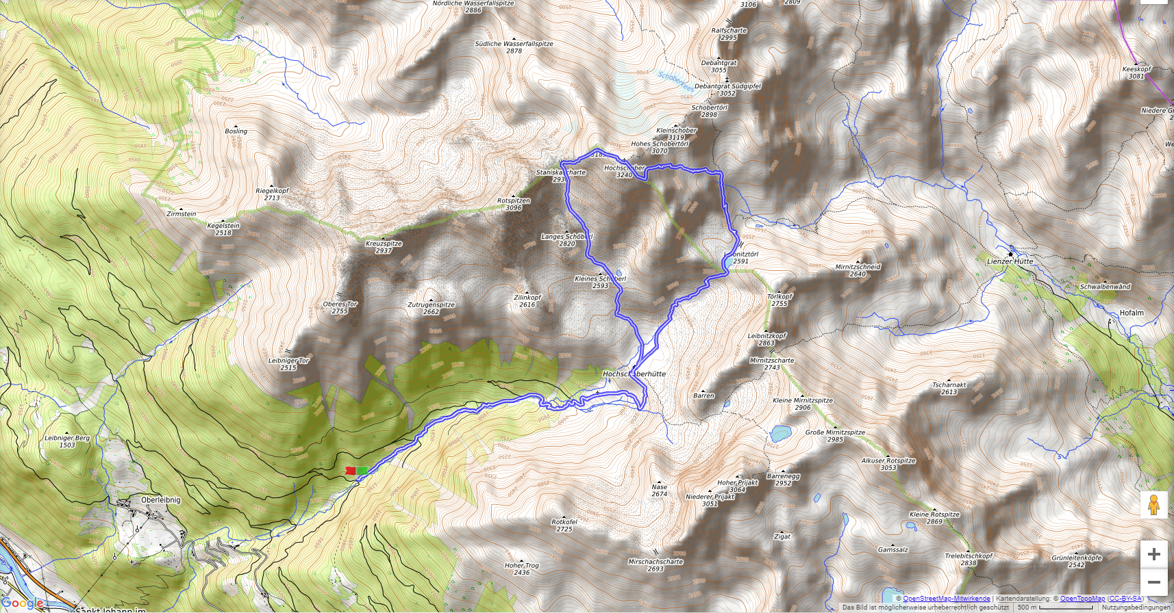 Der Hochschober (3242 m) hat der ganzen Gruppe ihren Namen gegeben. Der Aufstieg erfolgt von der Hochschoberhütte (2322 m), entweder über die Staniskascharte oder über den Gartlsee und das Leibnitztörl. Auf beiden Wegen ist hochalpine Erfahrung erforderlich. Die Überschreitung des Kleinschober ist durch den Gletscherrückgang schwieriger geworden. Das Gipfelkreuz wurde von dem 1992 verstorbenen Bergbuchautor Sepp Schnürer mit der Jungmannschaft des DAV Mühldorf errichtet.