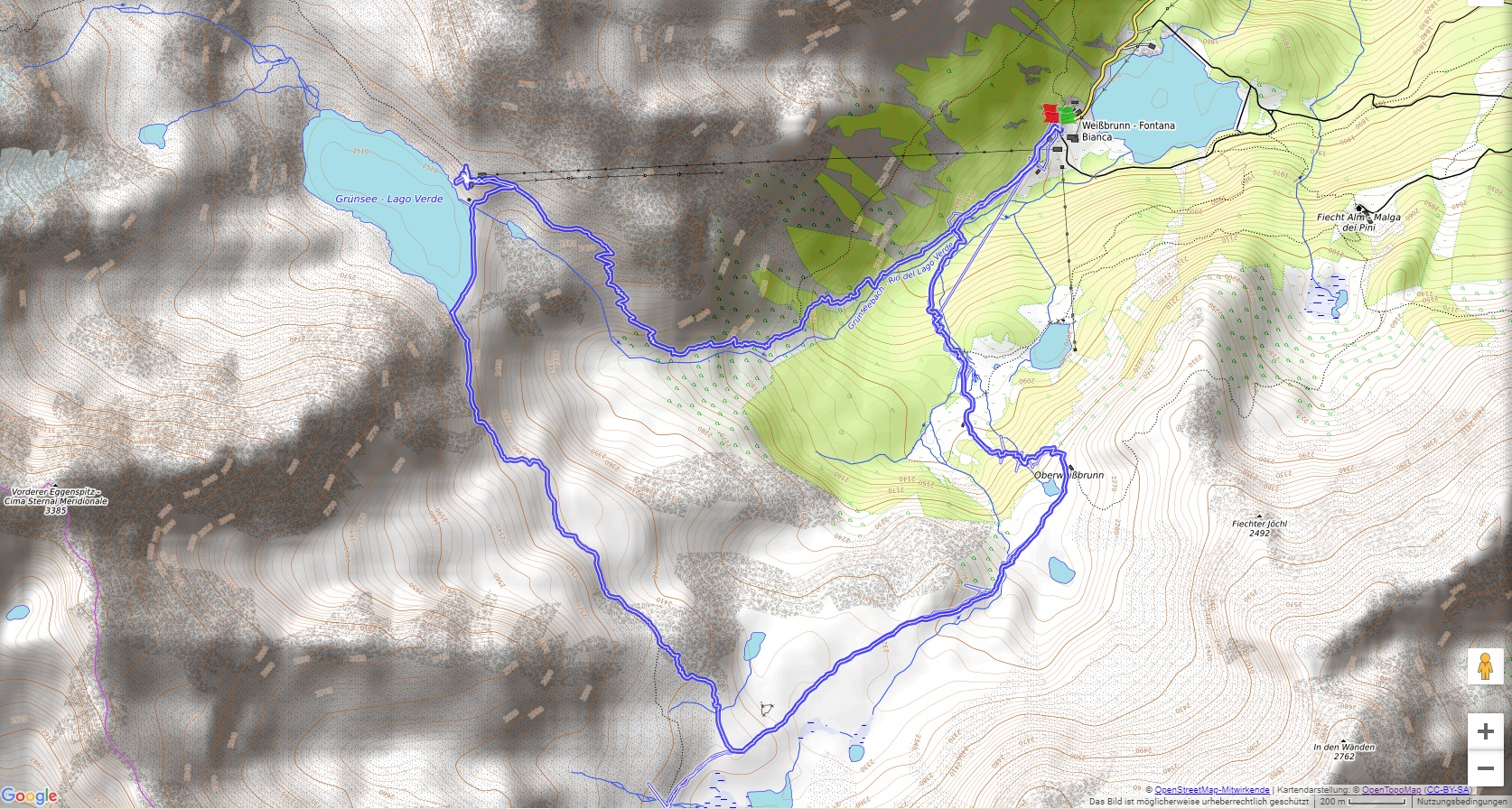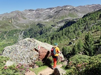 Im hintersten Ultental fahren wir von St. Gertraud hinauf zum Weissbrunnsee (1872 m). Wir steigen hinauf zur Oberen Weissbrunnalm (2214 m) und gehen weiter in das herrliche Tal hinein, bis wir die Abzweigung zur Höchster Hütte erreichen. Zum Schluss führt der Weg über die Staumauer des Grünsees bis zur Höchster Hütte (2561 m). Nach einer Rast gehen wir auf direktem Weg steiler hinunter zum Weissbrunnsee.