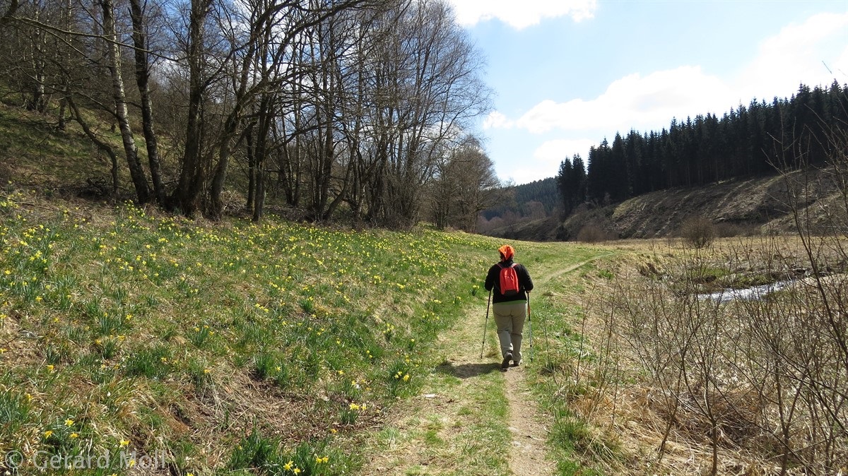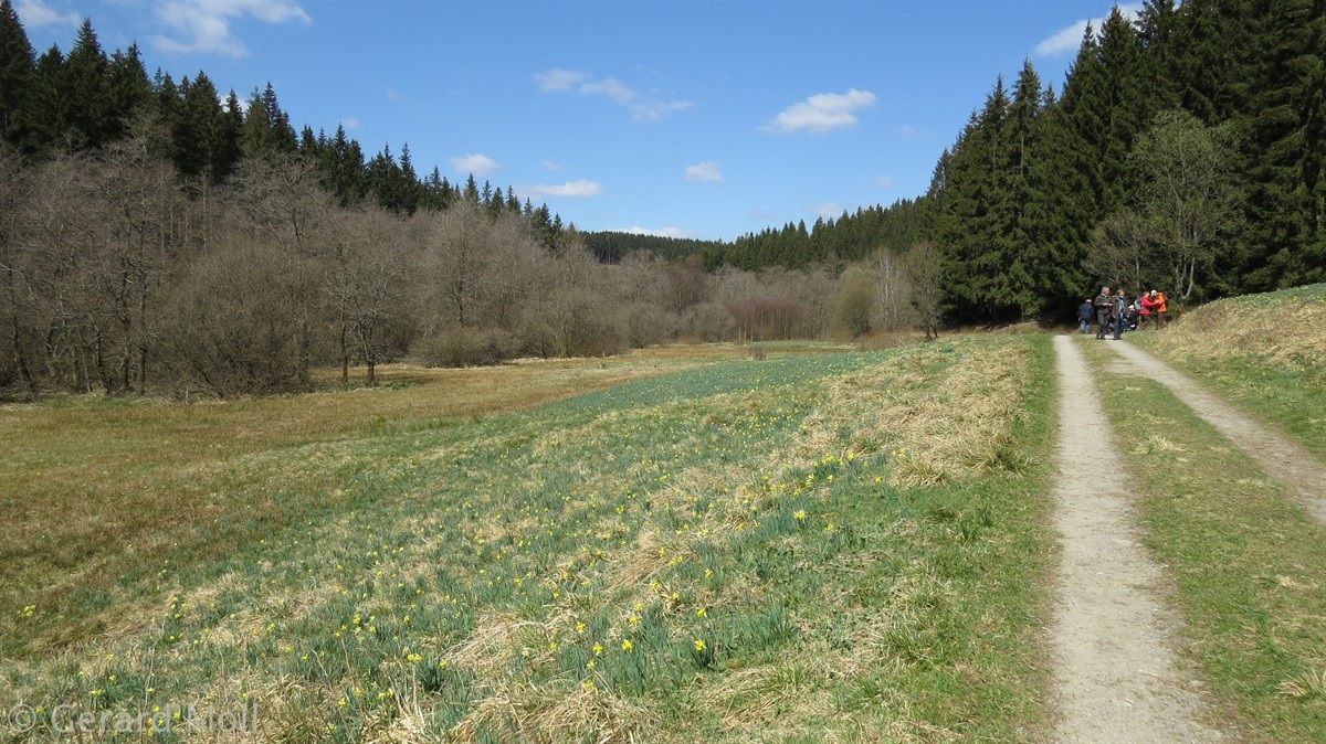 Jedes Jahr im Frühling blühen im Naturschutzgebiet Perlenbachtal Millionen wilder Narzissen. Unsere Runde führt von der Perlenbachtalsperre durch das Fuhrtsbachtal bis zu den Felsen der Bielei. Durch das Perlenbachtal kehren wir zum Ausgangspunkt zurück.