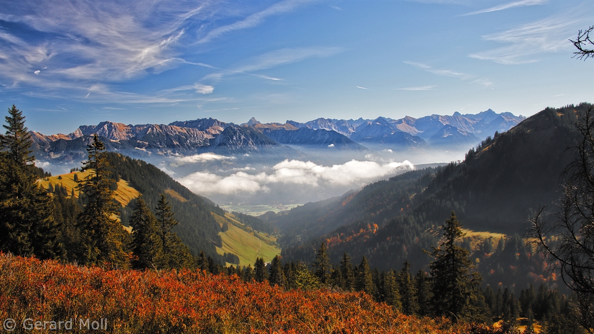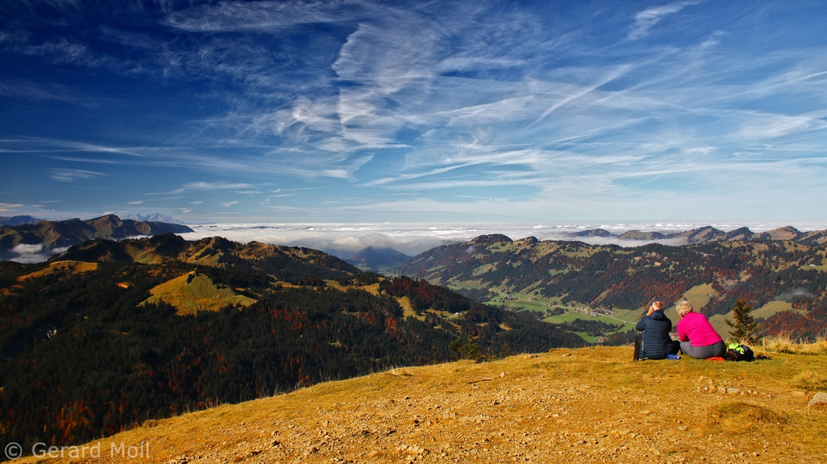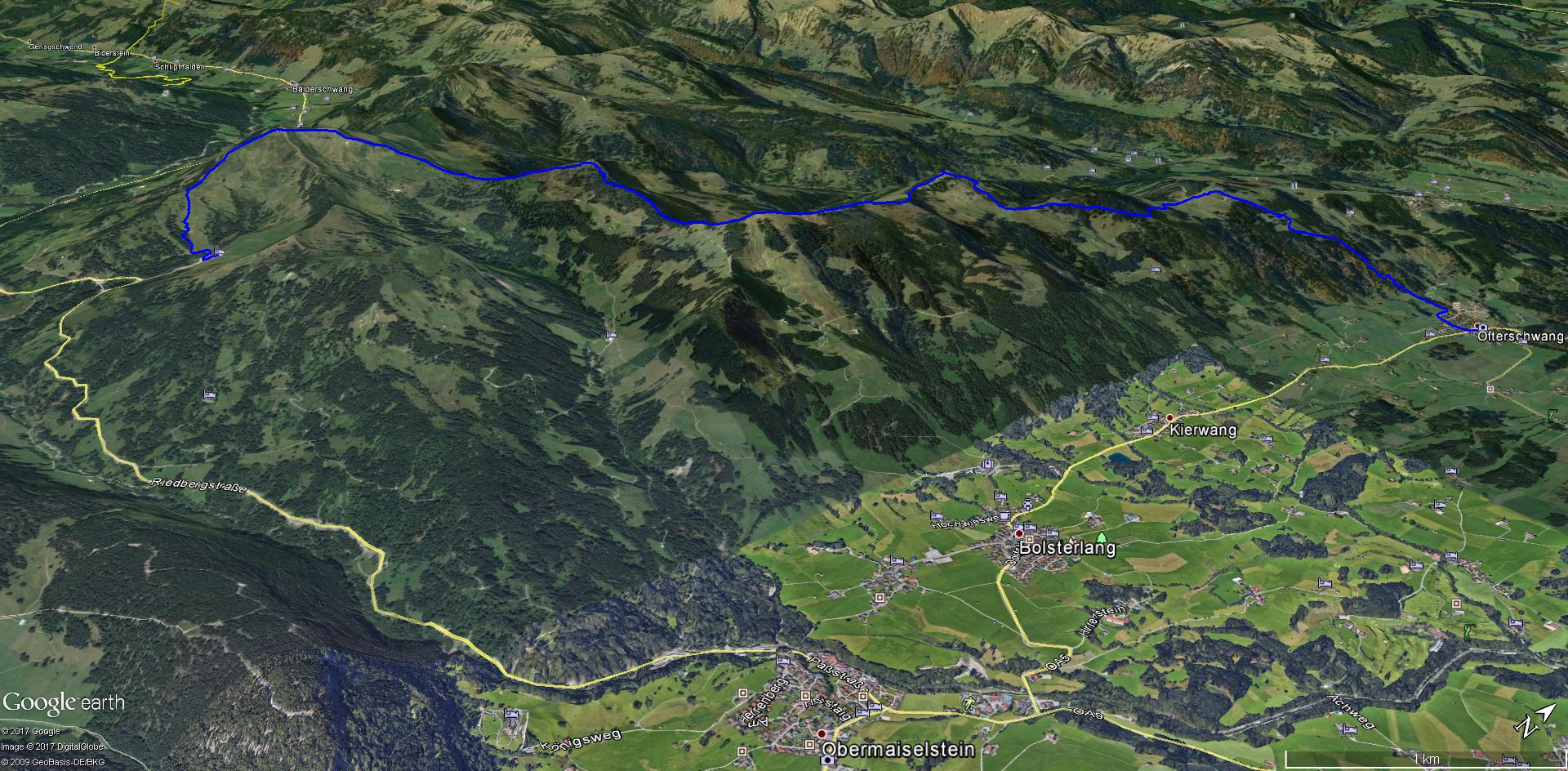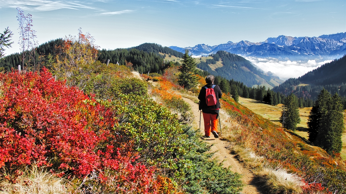 Die Fahrt von Ofterschwang mit dem Linienbus zur Grasgehrenhütte am Riedbergpass ermöglicht eine herrliche Überschreitung vom Riedberger Horn (1787 m) über Großen Ochsenkopf (1662 m), Weiherkopf (1665 m), Rangiswanger Horn (1616 m) zum Sigiswanger Horn. Über das Ofterschwanger Horn (1406 m) wird Ofterschwang wieder erreicht.