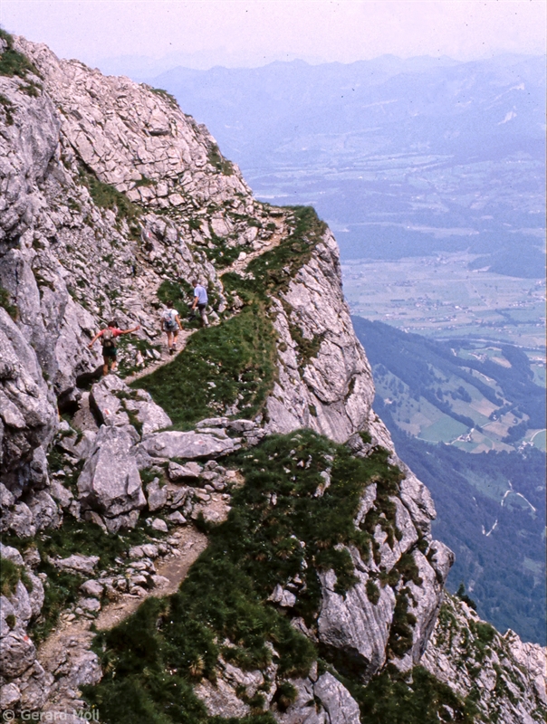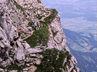 Der mächtige Hohe Göll (2522 m) kann auf mehreren Wegen erreicht werden, ganz leicht ist keiner von ihnen. Vom Kehlstein führt ein Klettersteig über den originellen Manndlgrat im Auf und Ab zur Göllschulter, vom Purtschellerhaus hat man die Wahl zwischen der Schusterroute und dem Kamin (beides gesicherte Wege), von Hinterbrand kommt der Weg durch das Alpeltal zum Gipfel, vom Stahlhaus kann man über das Hohe Brett und den Archenkopf zum Hohen Göll gelangen.