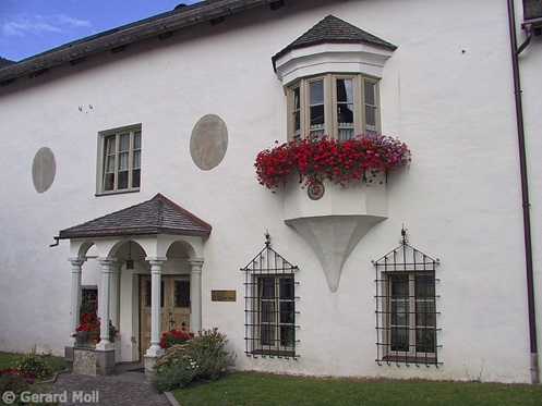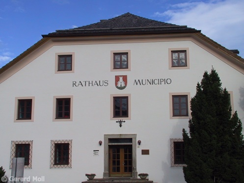 Bild in Lightbox öffnen (open image in lightbox). Das Rathaus von Innichen. Seine heutige Gestalt erhielt der ehemalige, um1300 erbaute, Amtssitz des Freisinger Pflegrichters in der Zeit um 1560. Der "Freisinger Mohr" im Wappen erinnert an die einstige Zugehörigkeit zum Hochstift Freising.
