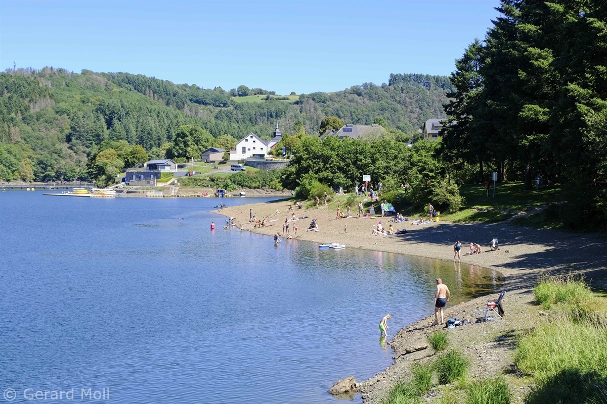 Wir sind in Lultzhausen gestartet und sind zuerst auf einem Teilstück des Skulturenweges gewandert. Nach der Überquerung des CR314 führt der Weg durch Wald bis nach Insenborn. Nach einem Abstecher zur Kirche St. Roch erreichen wir das Ufer des Stausees, dem wir zurück nach Lultzhausen folgen.