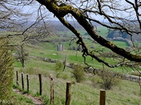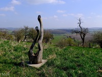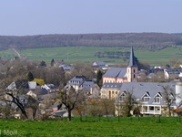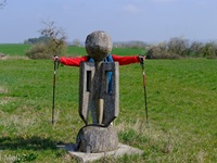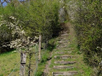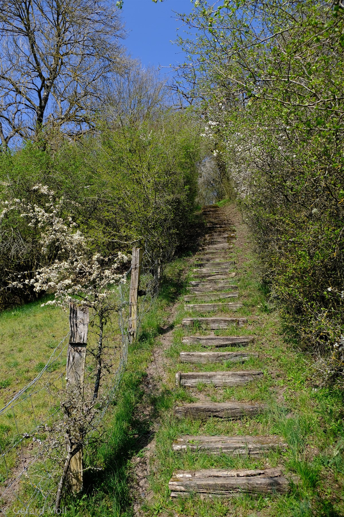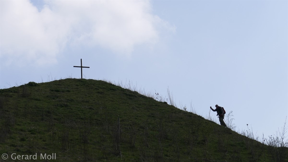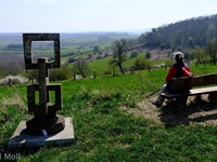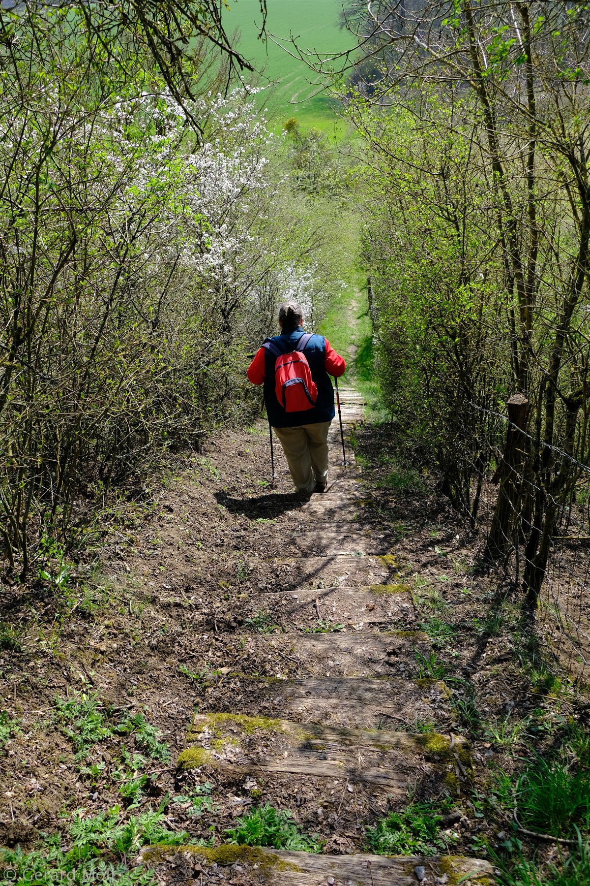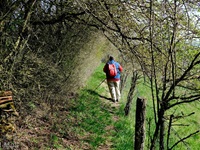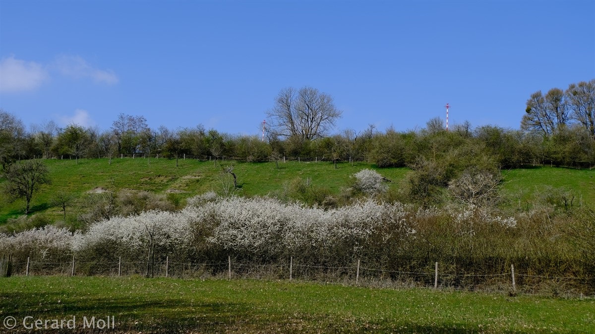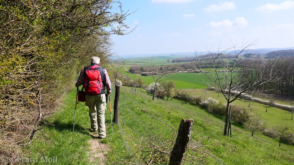 Wir haben die Tour abgekürzt und sind nur den östlichen Teil des Weges gegangen. Vom Parkplatz im Zentrum von Junglinster sind wir zuerst der Hauptstraße gefolgt und dann in die rue de la Montagne abgebogen. Nach der Unterführung haben wir uns rechts gehalten und sind durch den Wald nach Süden gewandert. Nach einem steilen Abstieg erreichten wir das verfallende, 1899 erbaute, Weimericher Schloss. Hier bot sich ein kurzer Abstecher zum Denkmal für die Opfer des Straßenverkehrs an. Der Weiterweg führte durch die Halbtrockenrasen des Naturschutzgebietes Weimericht, bis uns ein steiler Anstieg auf eine Fahrradpiste brachte, der wir zurück zu der Unterführung gefolgt sind.