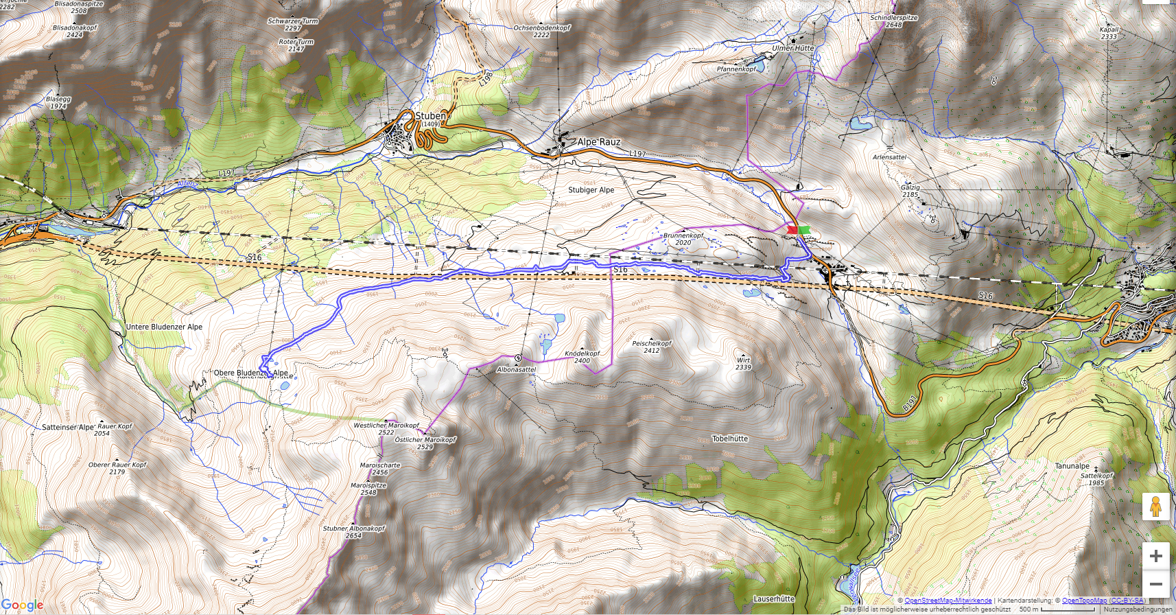 Ausgangspunkt der Tour ist St. Christoph am Arlberg (1793 m). In langer Querung, vorbei an kleinen Seen und Erzlöchern wird die Kaltenberghütte (2089 m) unschwierig erreicht.