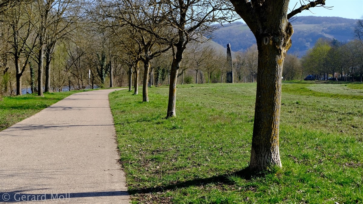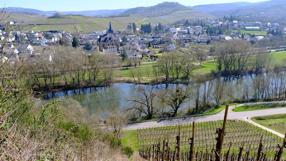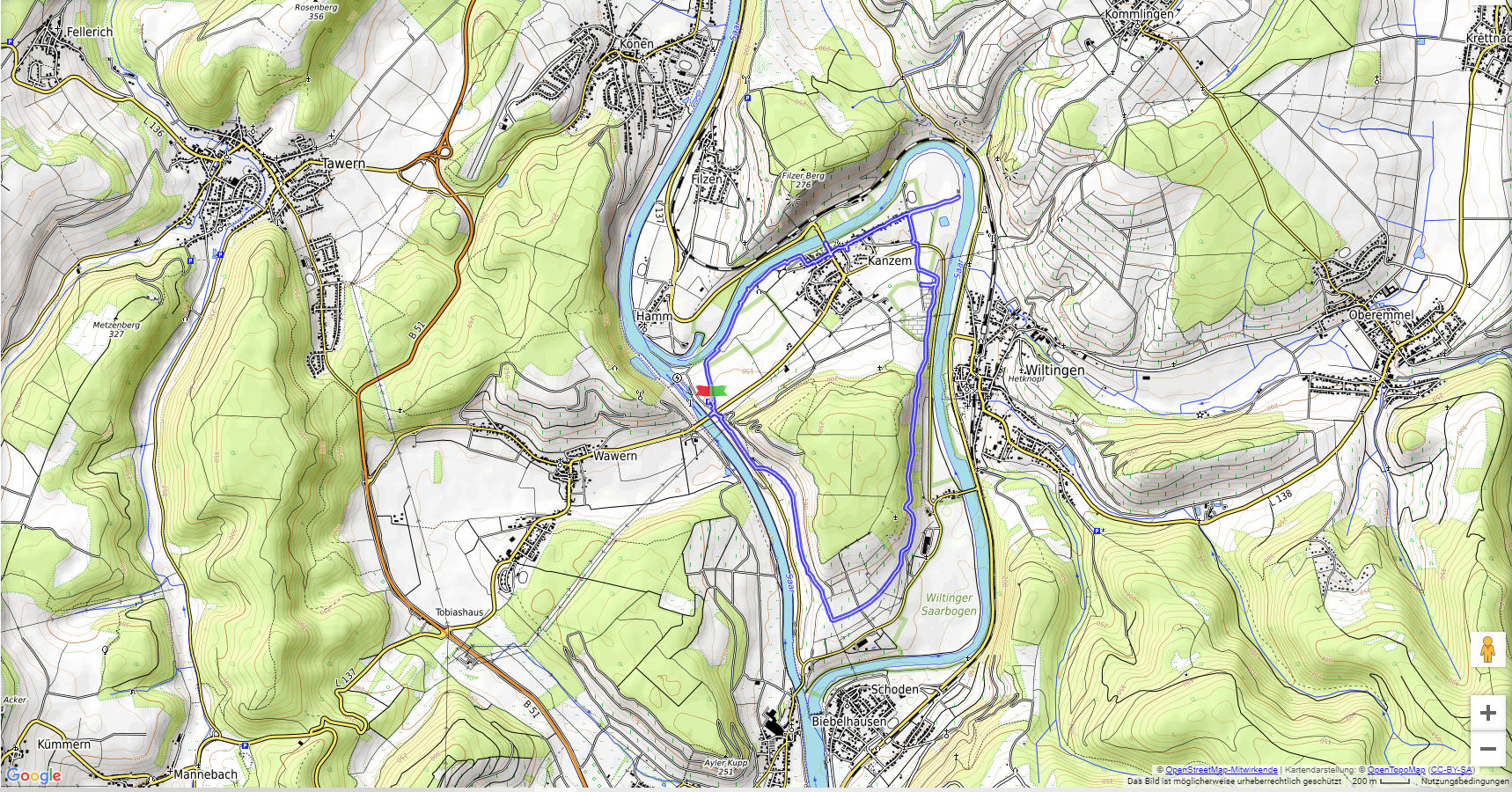 Wir parken bei der Brücke an der Schleuse und wandern zuerst am Altarm der Saar entlang bis in den Ort. Wir folgen dem Weg "Naturspur am Altarm der Saar" bis dieser sich am Waldrand nach rechts wendet, dort gehen wir geradeaus weiter bis zu den Weinbergen im Süden der Saarinsel. Auf der Westseite der Insel kehren wir zur Schleuse zurück. Dieser Weg ist nicht durchgehend markiert, es empfiehlt sich, dem GPS-Track zu folgen.