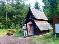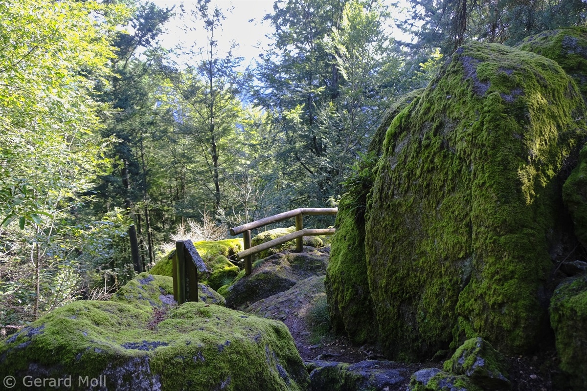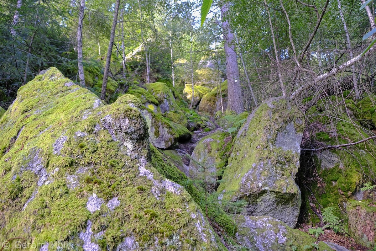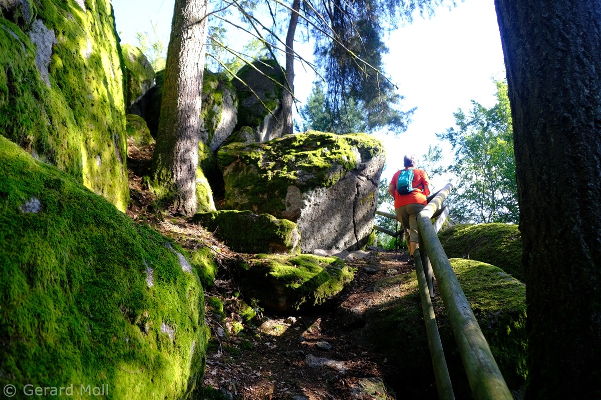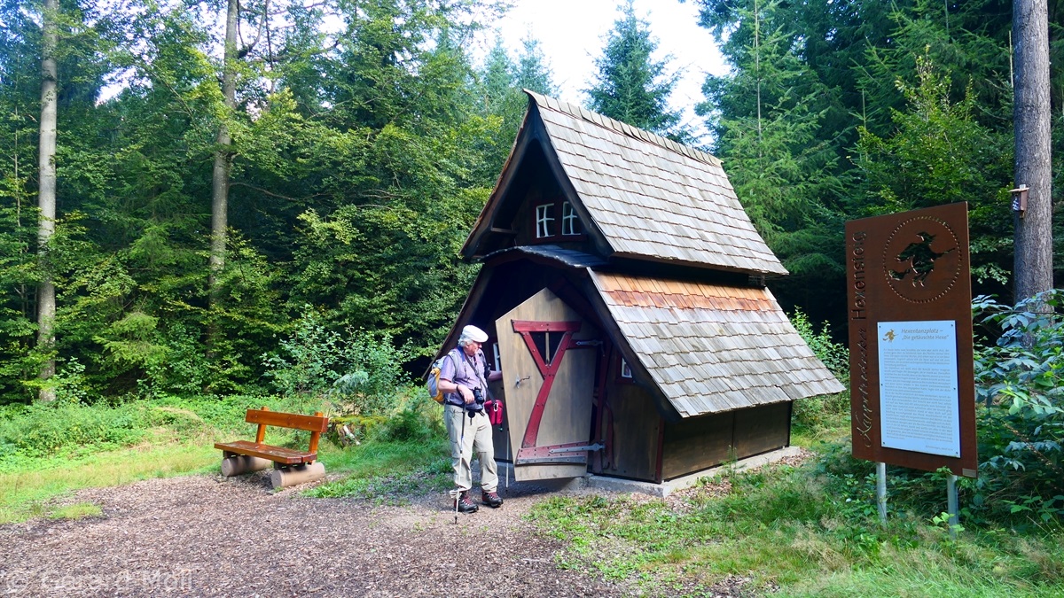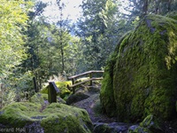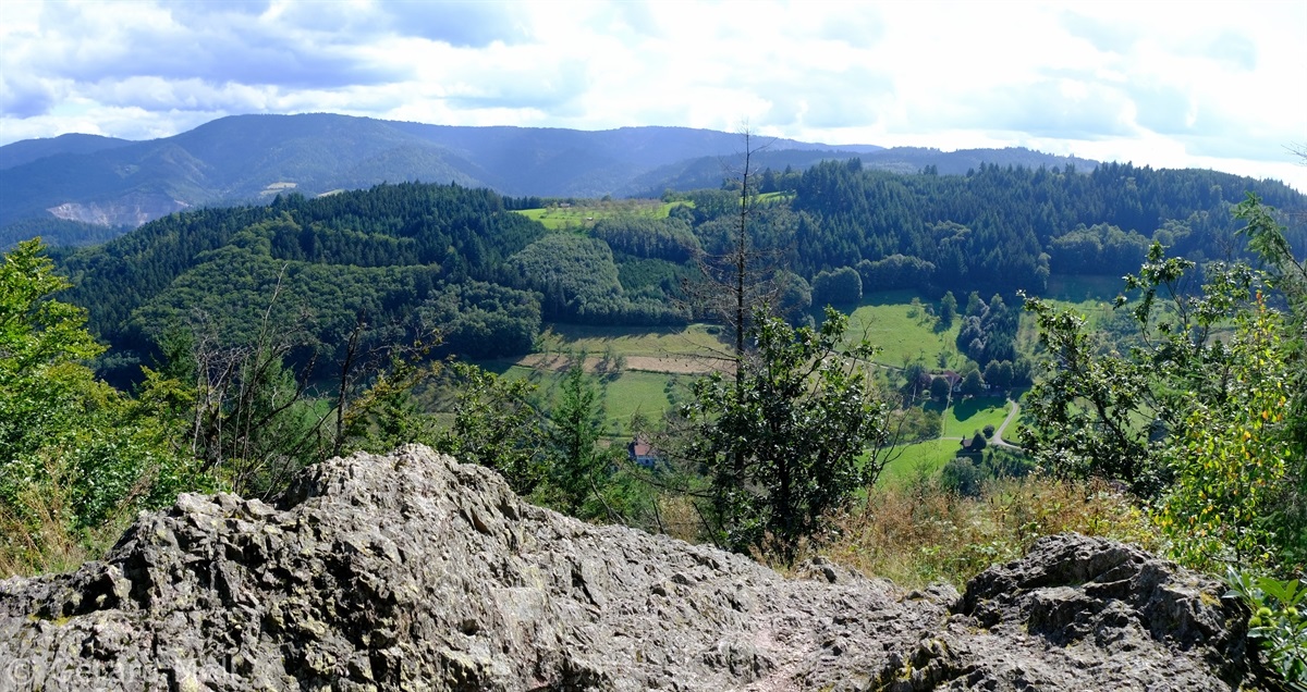 Nachdem wir über eine schmale Strasse den Wanderparkplatz Blaubronn erreicht haben, wandern wir auf einer Kombination aus Hexensteig und Felsenweg. Am Katzenschrofen vorbei geht es hinauf zum Hexentanzplatz mit Hexenhäuschen. Unser nächstes Ziel ist das Simmersbacher Kreuz. Von dort wandern wir entlang des Felsenweges zunächst hinauf zum Rappenschrofen und dan weiter zum Sesselfelsen mit Gipfelkreuz und herrlicher Aussicht. Nun ist es nicht mehr weit hinunter zum Parkplatz.