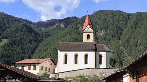 Katharinaberg liegt auf steilem Fels hoch über dem Schnalserbach am Anfang des Schnalstales.