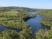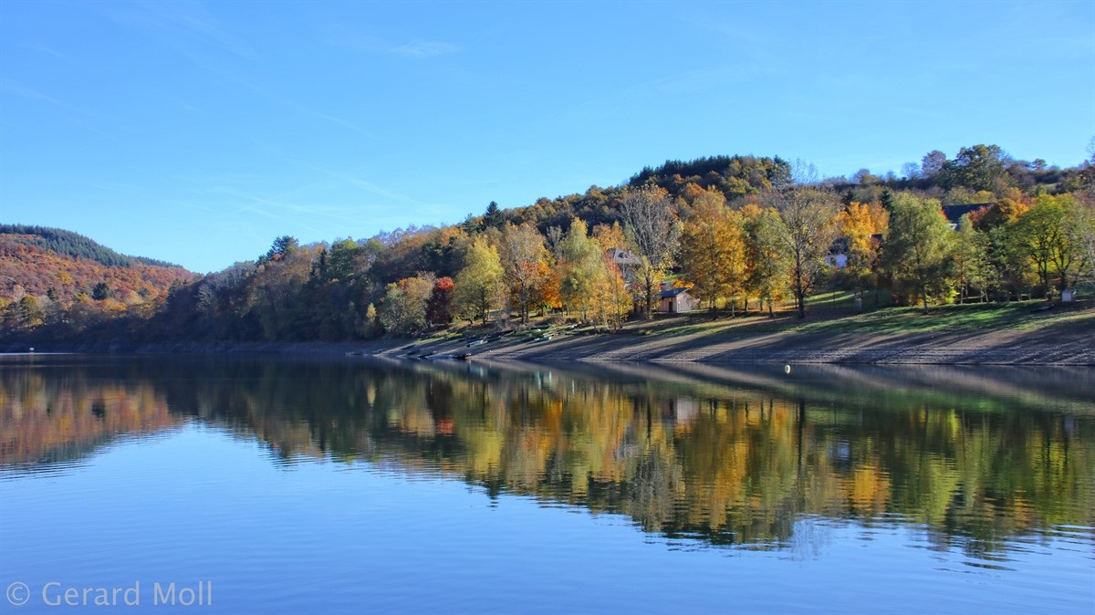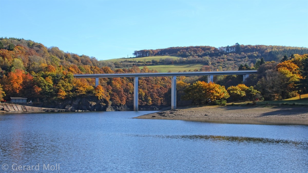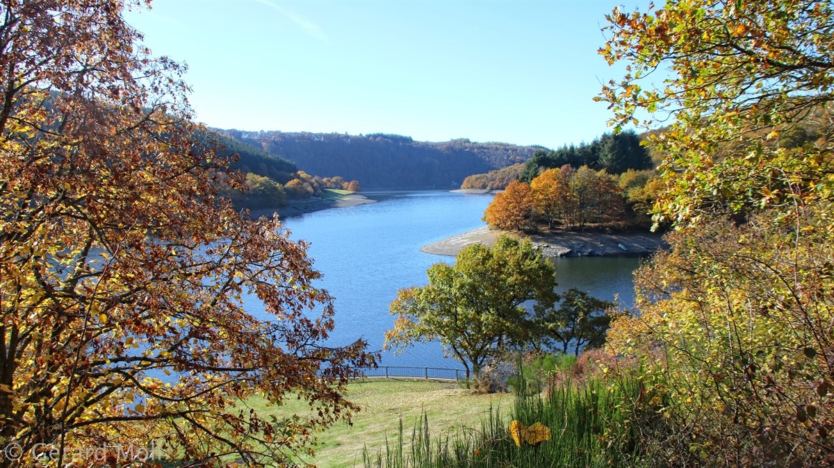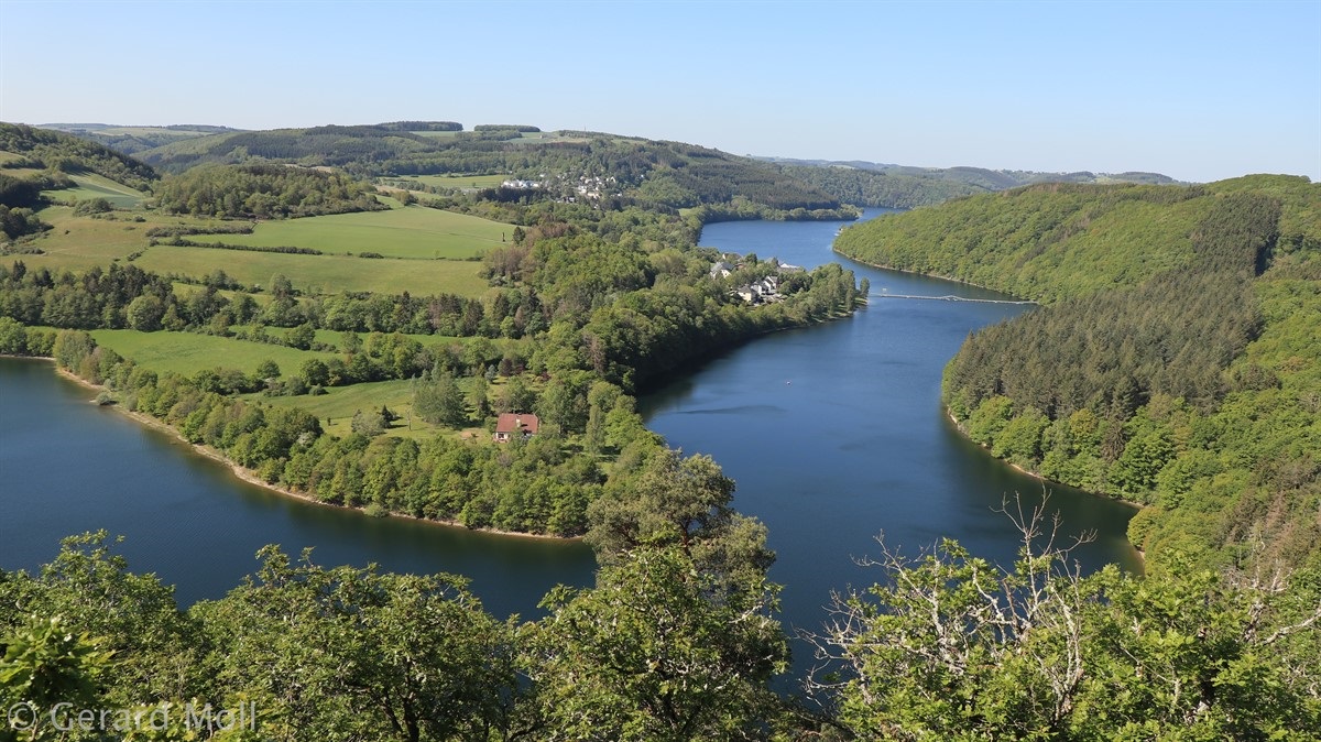 Von Kaundorf folgen wir zuerst, mit herrlichen Ausblicken auf den Stausee, dem Verlauf des Autopédesters. Am Bunker aus dem 2. Weltkrieg verlassen wir den Autopédester und steigen bis zum Stausee ab. Am Ufer erreichen wir Liefrange und steigen durch Felder wieder hinauf nach Kaundorf.