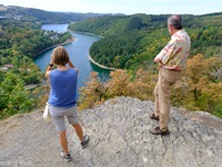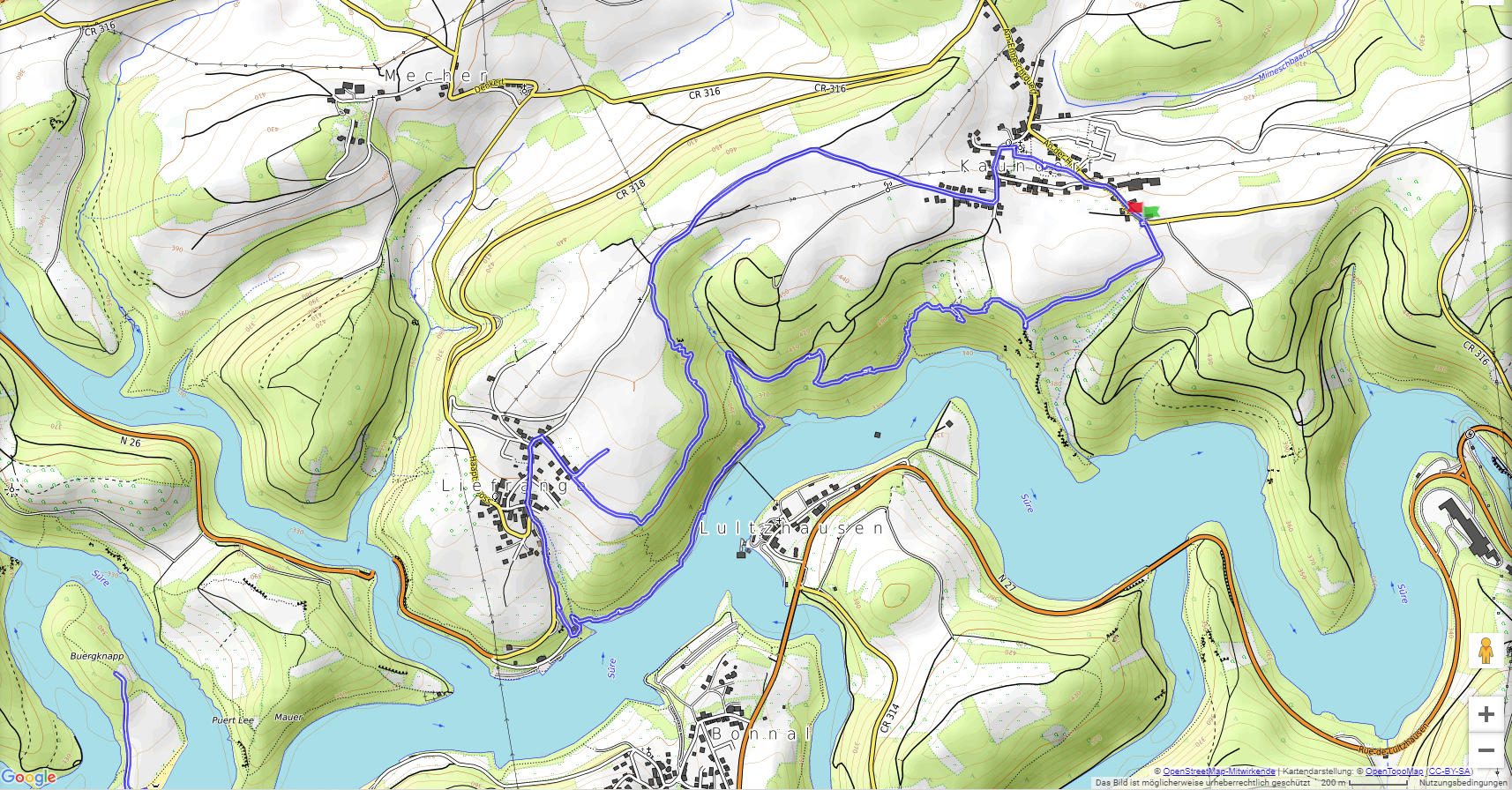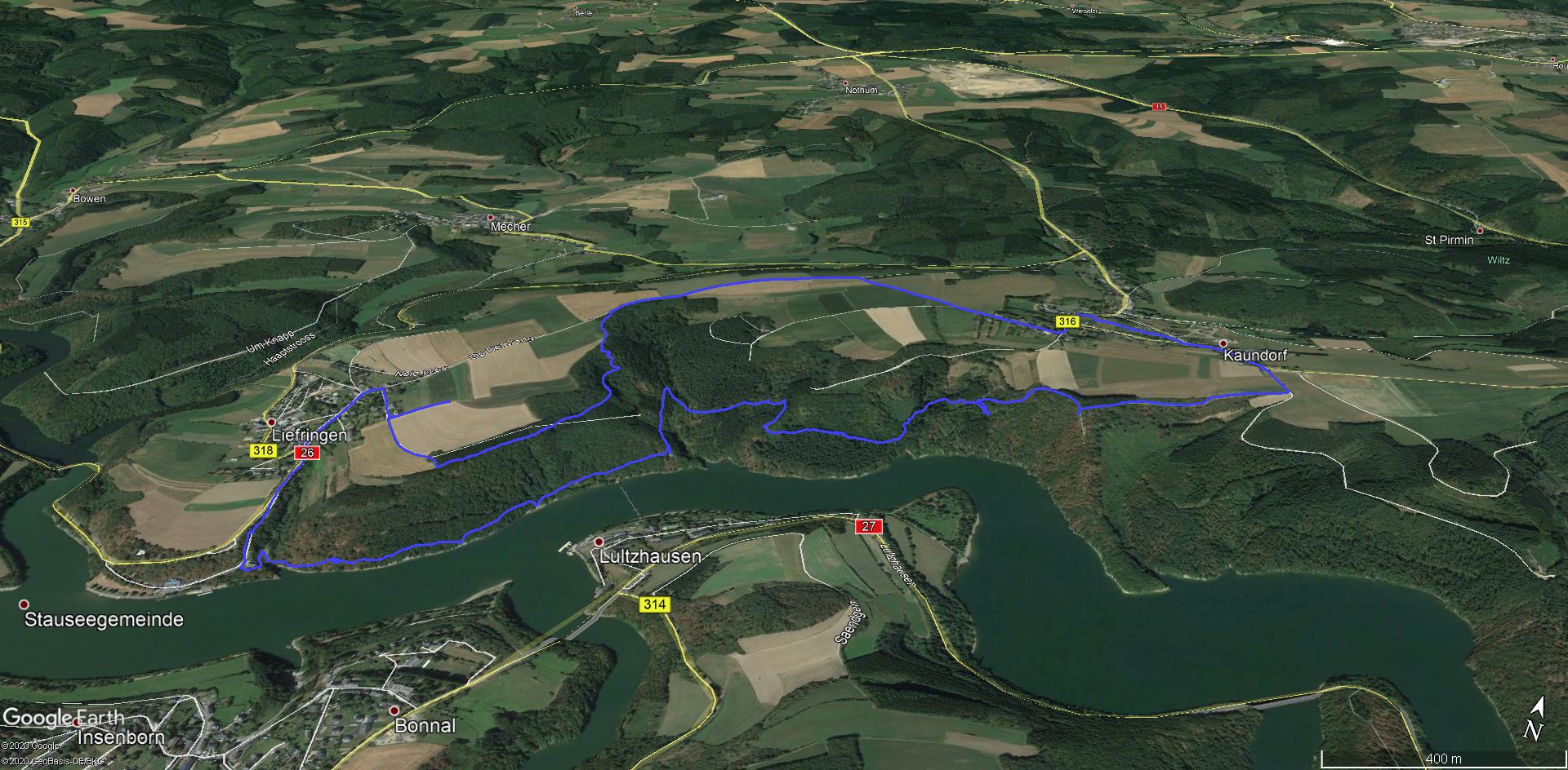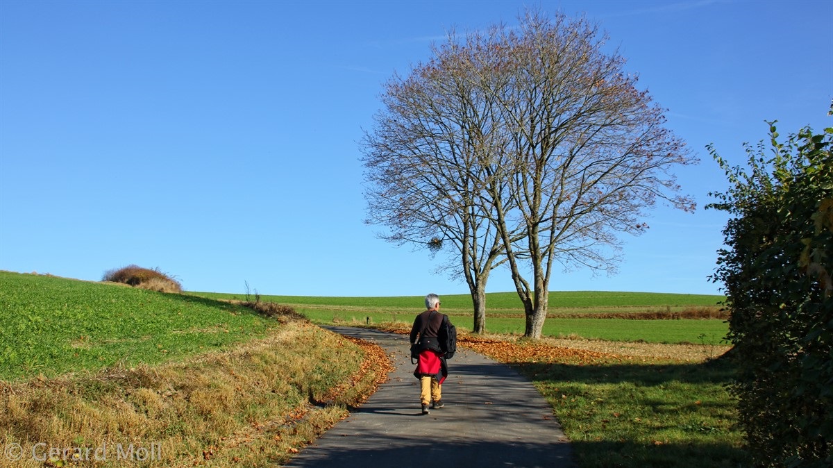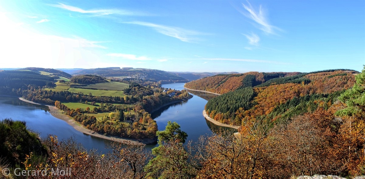 Von Kaundorf folgen wir zuerst, mit herrlichen Ausblicken auf den Stausee, dem Verlauf des Autopédesters. Am Bunker aus dem 2. Weltkrieg verlassen wir den Autopédester und steigen bis zum Stausee ab. Am Ufer erreichen wir Liefrange und steigen durch Felder wieder hinauf nach Kaundorf.