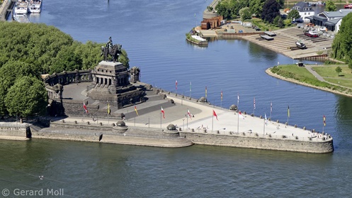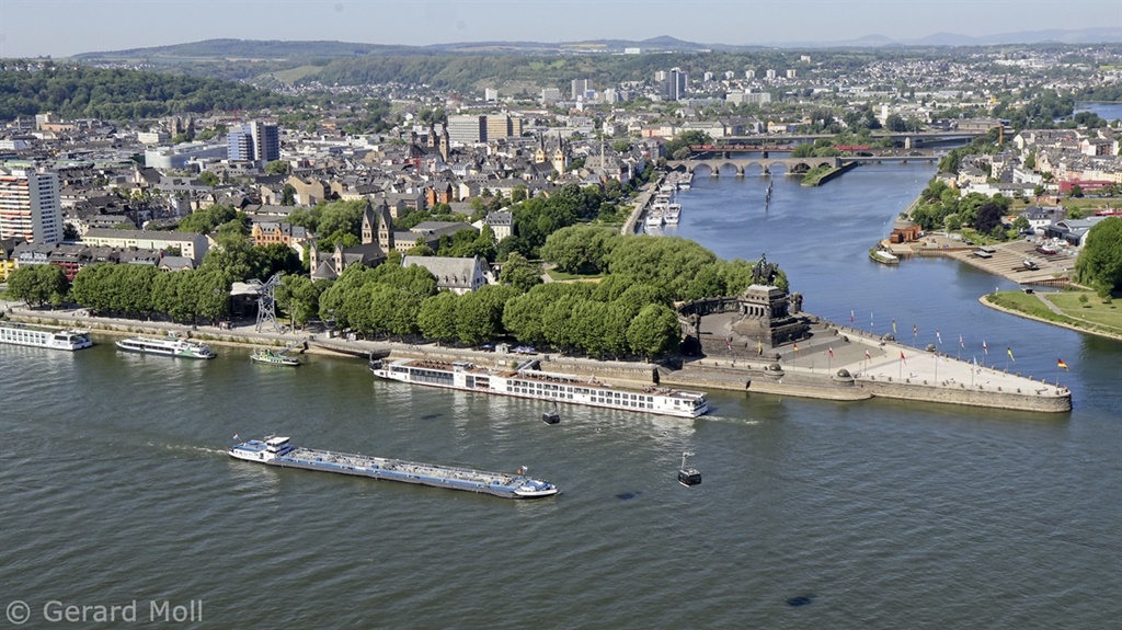 In Koblenz, am Deutschen Eck, fließt die Mosel in den Rhein.