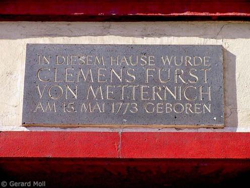 Bild in Lightbox öffnen (open image in lightbox). Gedenktafel am Haus Metternich, dem Geburtshaus von Fürst Clemens von Metternich.