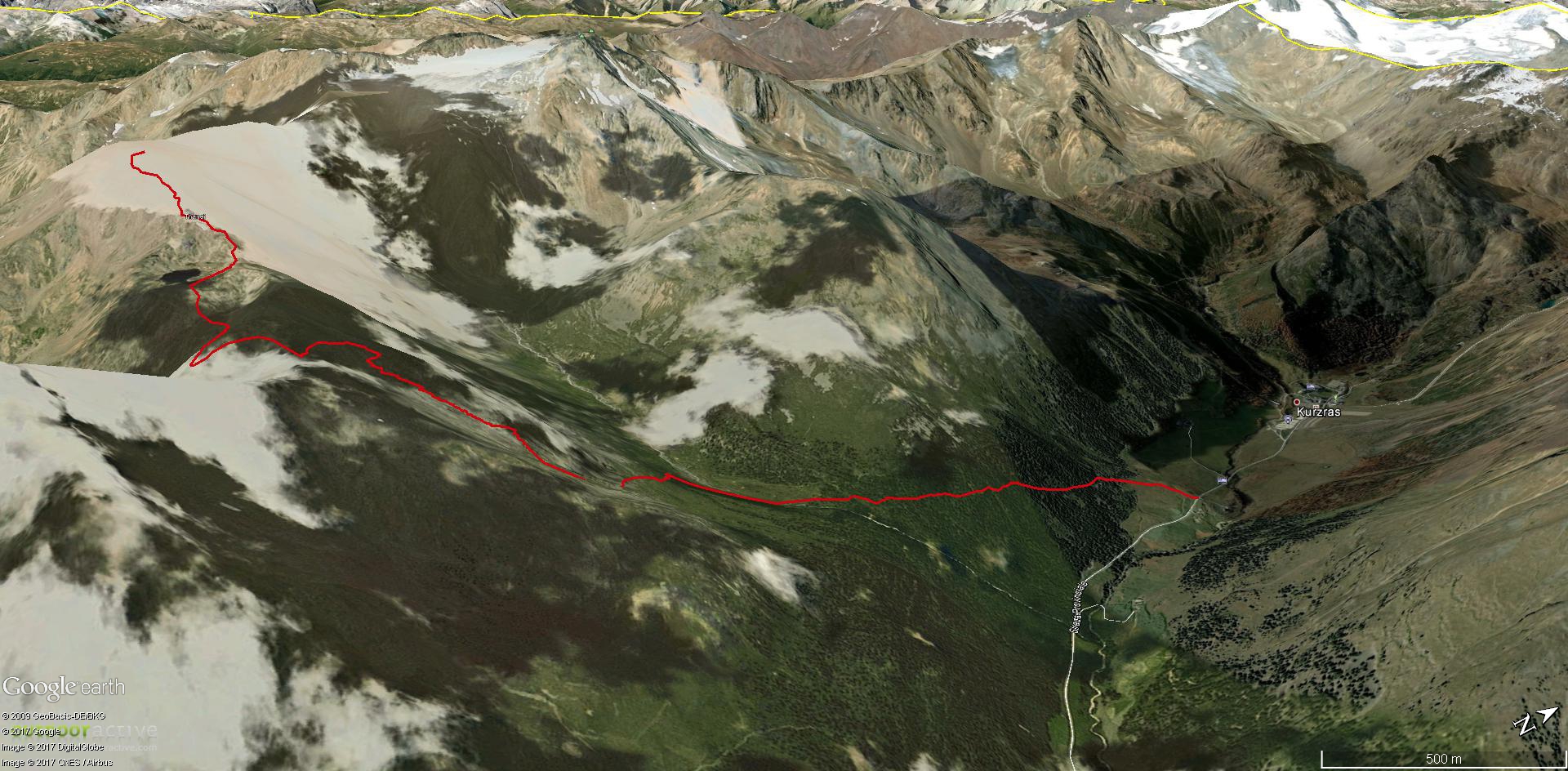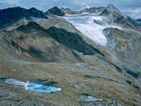 Einsame Tour im hinteren Schnalstal. Von den Köflhöfen (1926 m) führt ein Weg ins Lagauntal, dann steiler hinauf zum Taschljöchl (2794 m), wo ein Unterstand an die frühere Heilbronner Hütte erinnert. Nun geht es auf Steigspuren am Hungerschartensee vorbei zum Gipfel des Kortscher Schafbergs (3099 m).