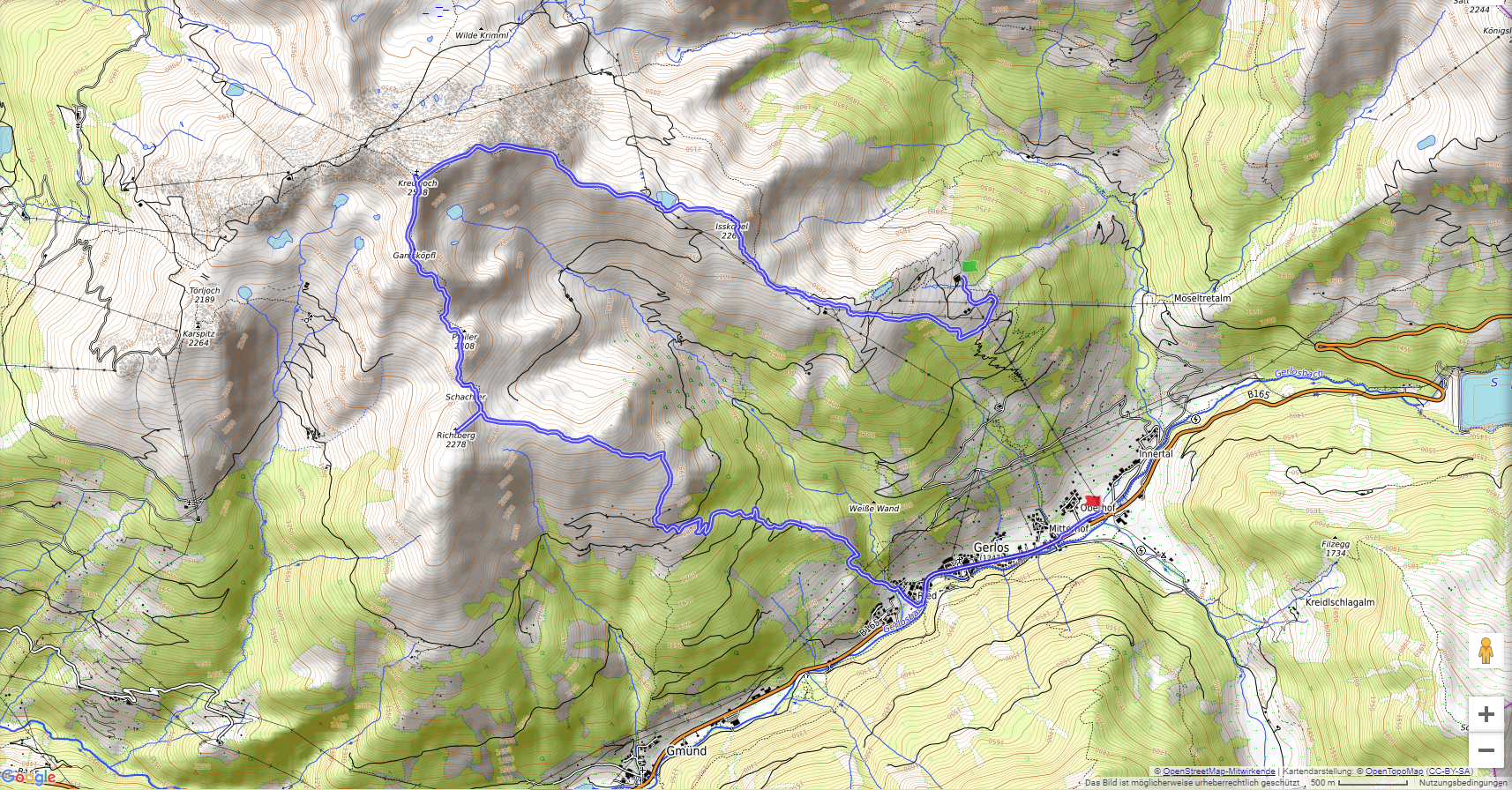 Die Seilbahn von Gerlos hat uns den Weg zum Kreuzjoch verkürzt. Wir starten auf 1843 m und erreichen bald den Isskogel (2268 m). Der nächste Aufschwung bringt uns schon zum Gipfel des Kreuzjochs (2558 m). Vom höchsten Gipfel der Kitzbüheler Alpen ist die Aussicht überragend ! Über den Richtberg (2278 m) erreichen wir wieder Gerlos.