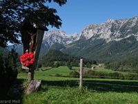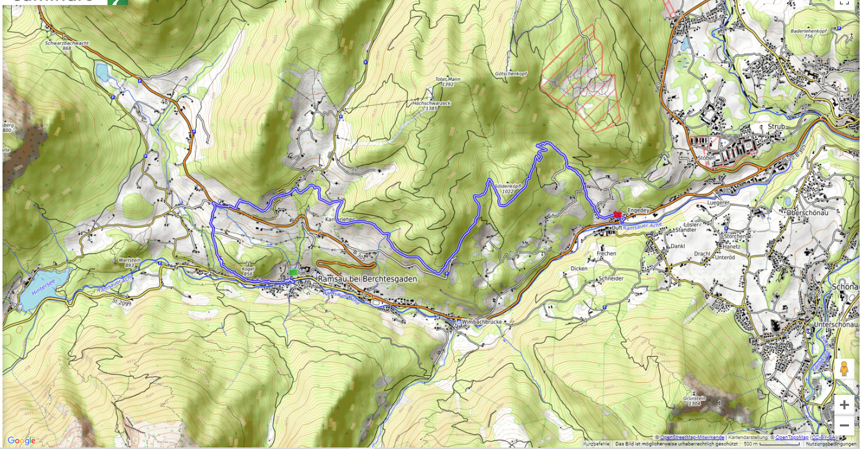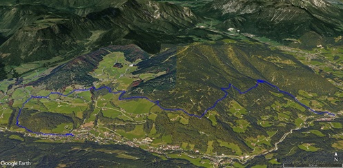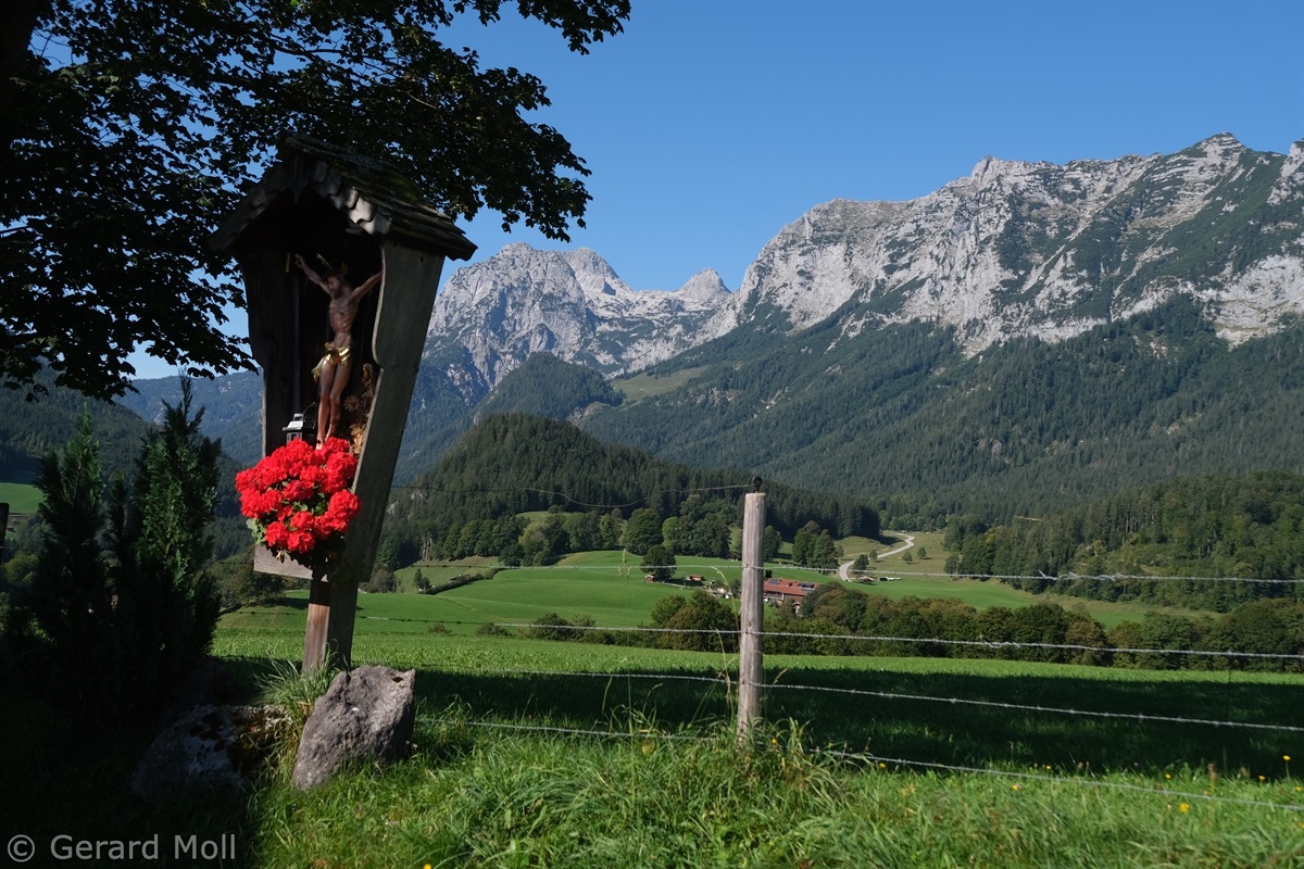 Von Engedey sind wir mit dem Bus zu unserem Ausgangspunkt bei der Kirche in der Ramsau gefahren. Von hier folgen wir, vorbei an der Kalvarienberg-Kapelle, dem Kreuzweg zur Kunterkirche aus dem Jahr 1731. Ein steiler Anstieg bringt uns zur Hindenburglinde und dem Soleleitungsweg. Diesem folgen wir fast eben zum Zipfhäusl und weiter nach Gerstreit und em Gasthaus Söldenköpfl. Von hier steigen wir steil ab nach Engedey.