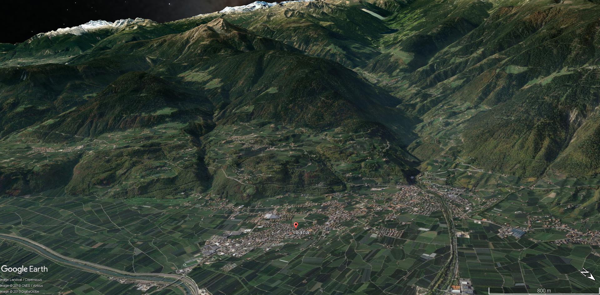 Die im Burggrafenamt liegende Obstanbau-Gemeinde Lana gliedert sich in Ober-, Mittel- und Niederlana. Bei Oberlana mündet das Ultental ins Etschtal.