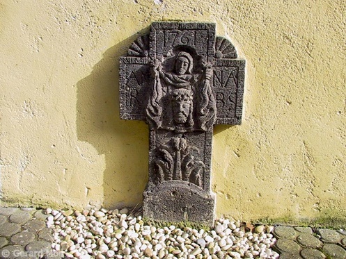 Bild in Lightbox öffnen (open image in lightbox). Kreuz an der Pfarrkirche Sankt Castor in Lehmen.
